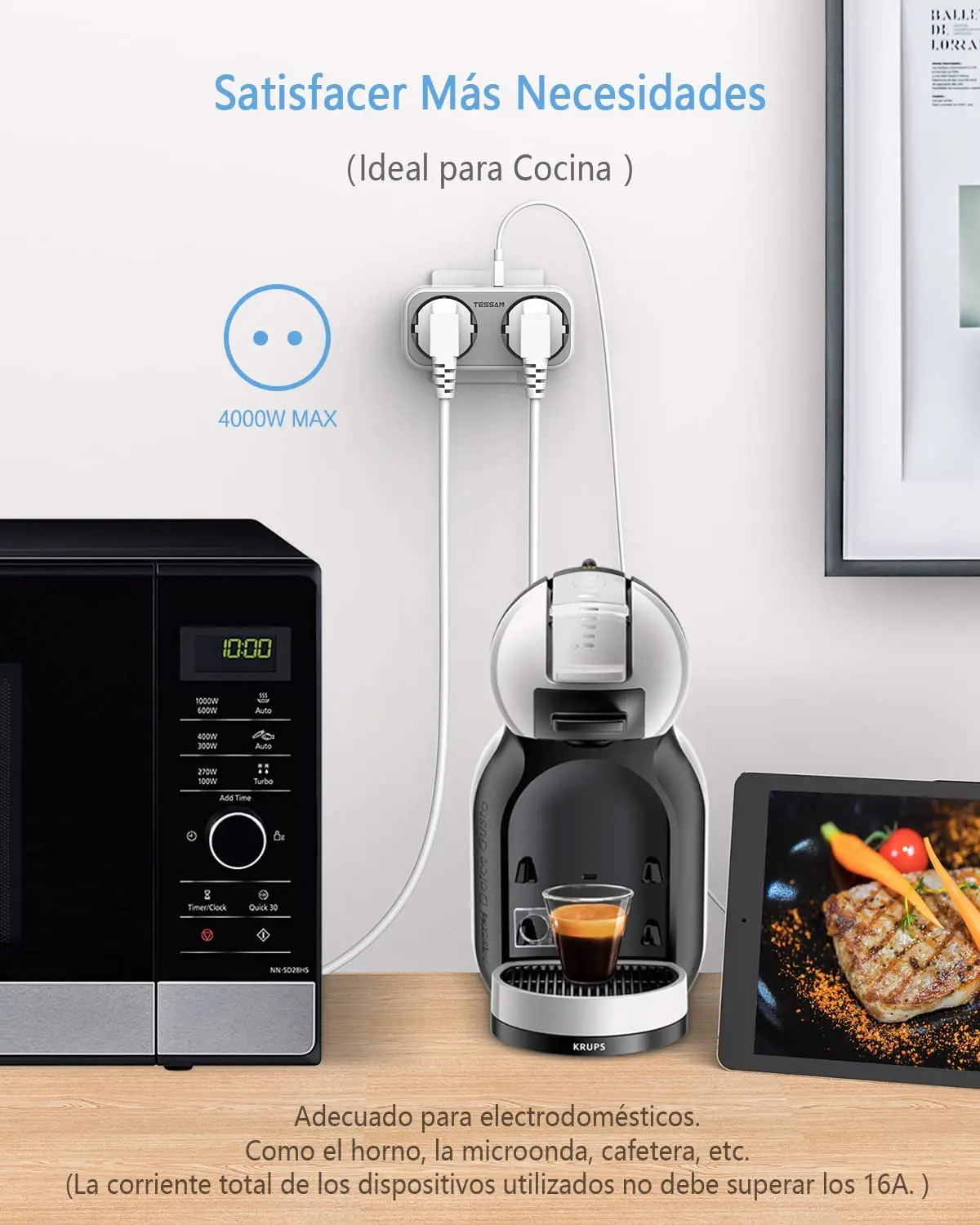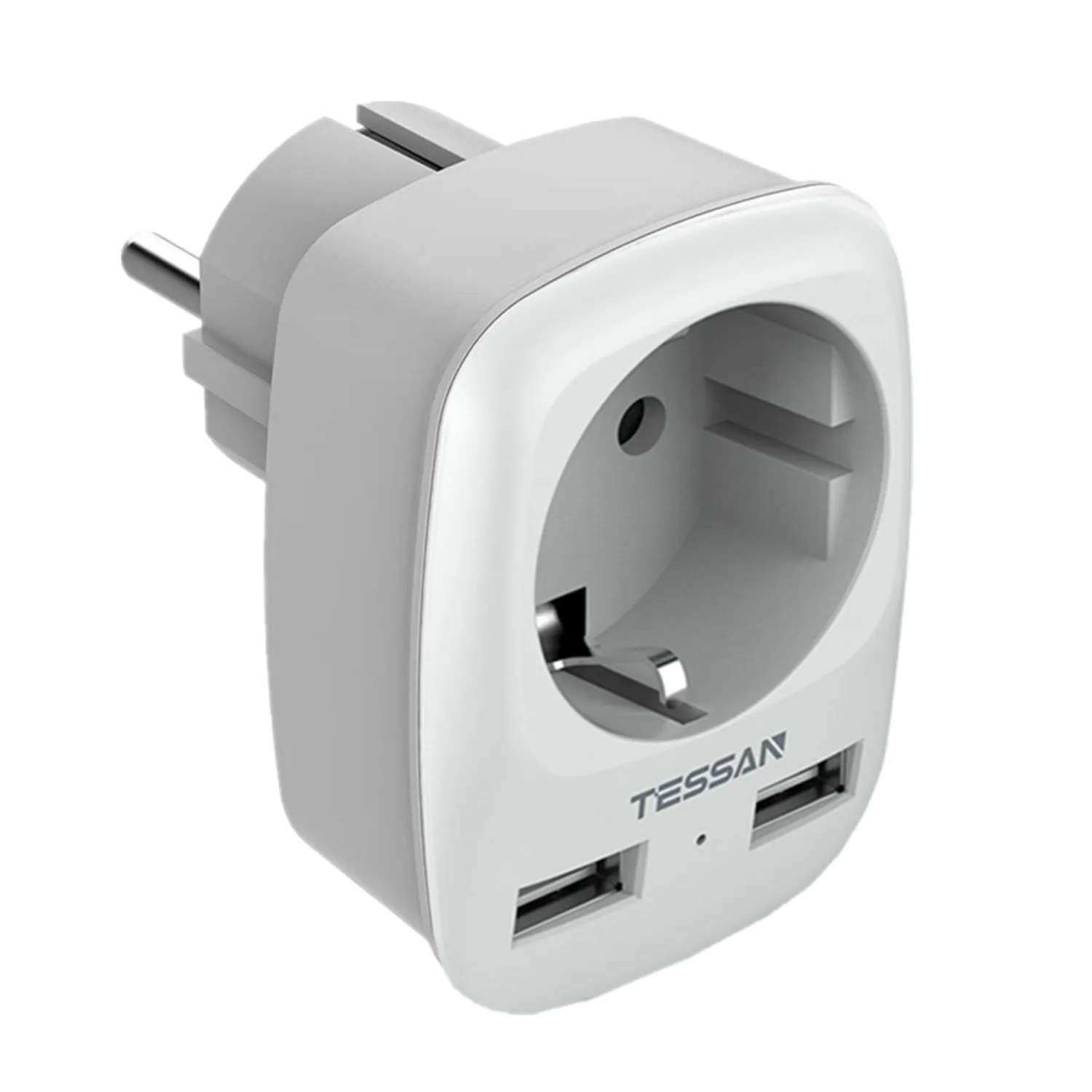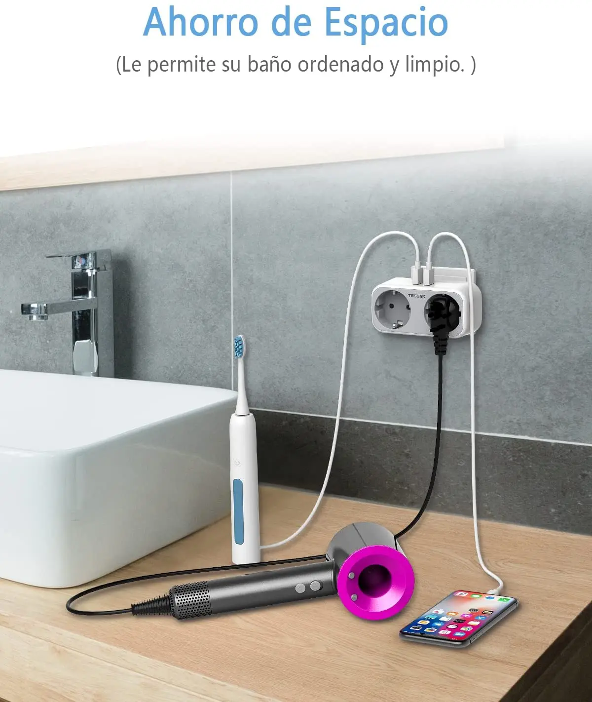 2 выхода питания 2 порта USB: Зарядное устройство TESSAN plug usb очень подходит для подключения к обычной испанской розетке. Просто подключите к любому испанскому настенному зарядному устройству, Расширьте его как одну вилку переменного тока и два usb-порта, экономя вам хлопот с подключением многих зарядных устройств USB. Этот продукт может удовлетворить ваши различные потребности зарядки в одном месте. Беспроводная полоса питания может значительно сэкономить ваше пространство и сохранить ваши вещи в порядке.