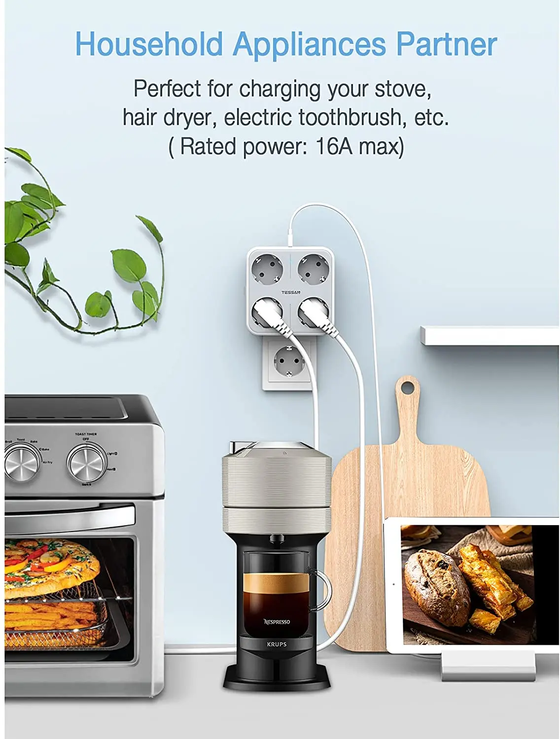 4-полосная штепсельная вилка с 3 портами (стандарт:В TESSAN Мощность лента подходит для подключения к стандартному Пособия по немецкому языку (4,8 мм) с заземлением розетки, просто подключите его к любому Deutsch резьбой раструбного соединения для вы получаете удлинитель для 4-полосная и 3-сторонний выход розетки. Usb-розетки. Эта лента питания USB может удовлетворить ваши потребности в зарядке в одном месте.