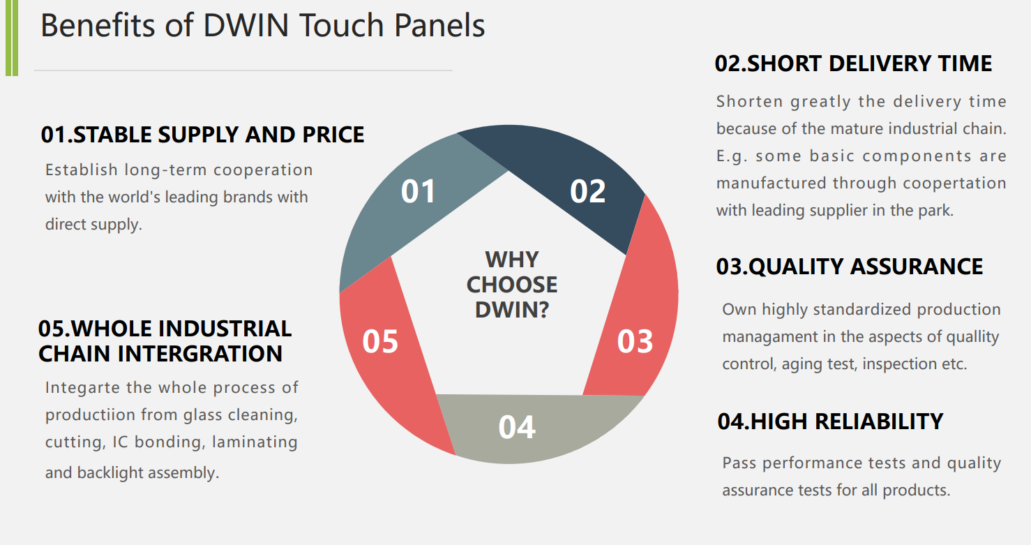 DWIN Technology is the world's leading provider of high-quality human-machine interaction (HMI) products and solutions. Relying on the leading and competitive advantages of products in terms of functions, quality, services, and prices, DWIN Technology's HMI products and solutions are widely used in industries such as smart appliances, new energy, financial machinery, engineering machinery, artificial intelligence, export mechanical and electrical products and medical, beauty and health care, etc.