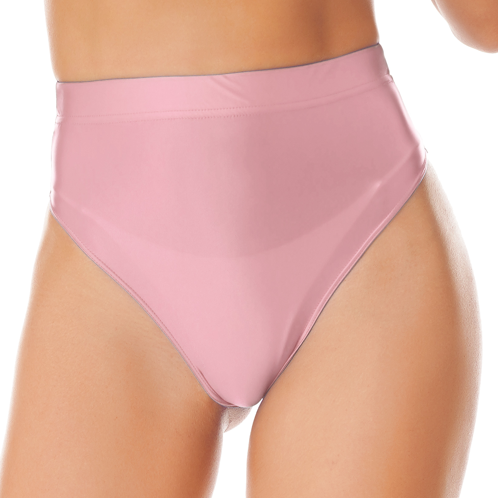 Женские глянцевые Однотонные трусы с высокой талией, нижнее белье, купальник.