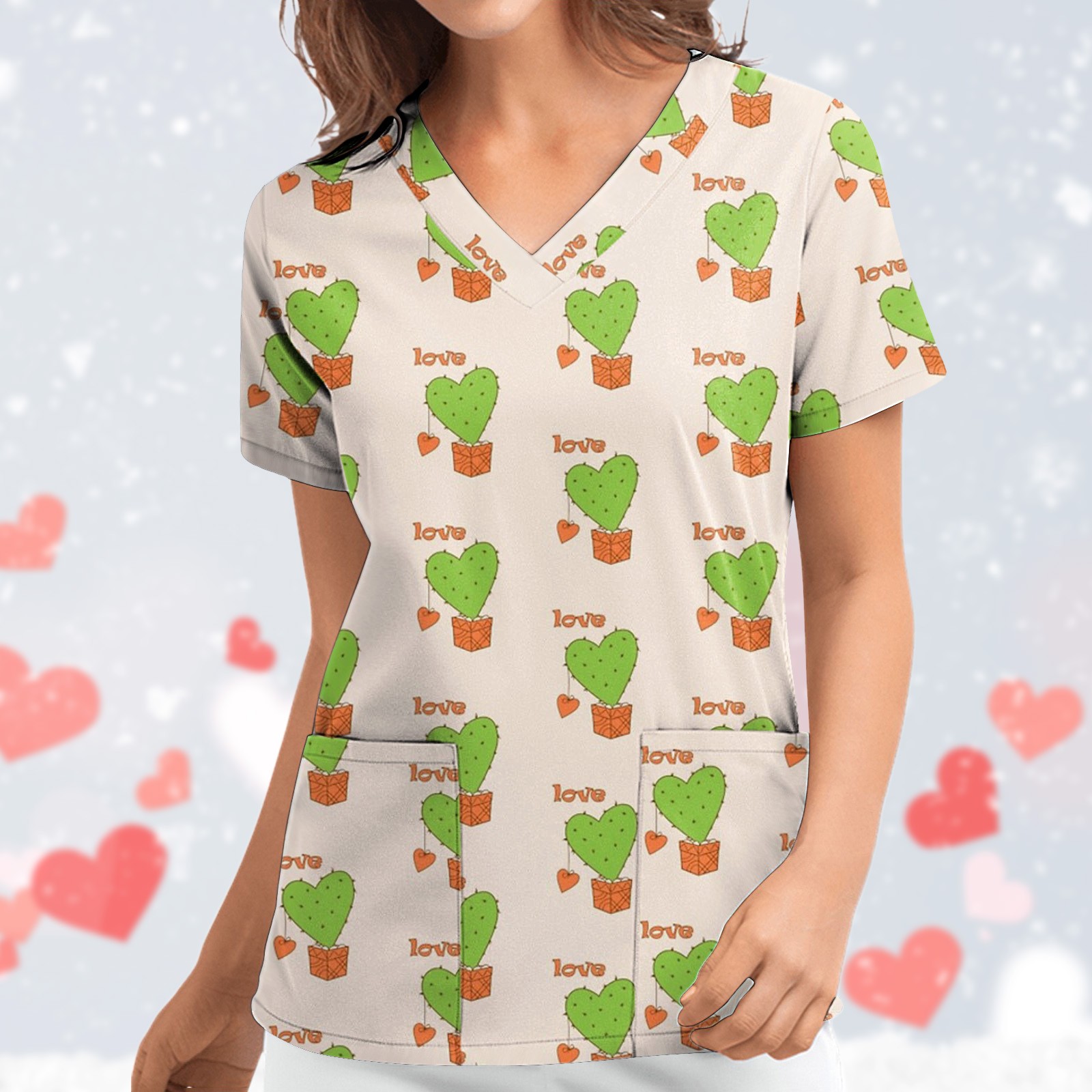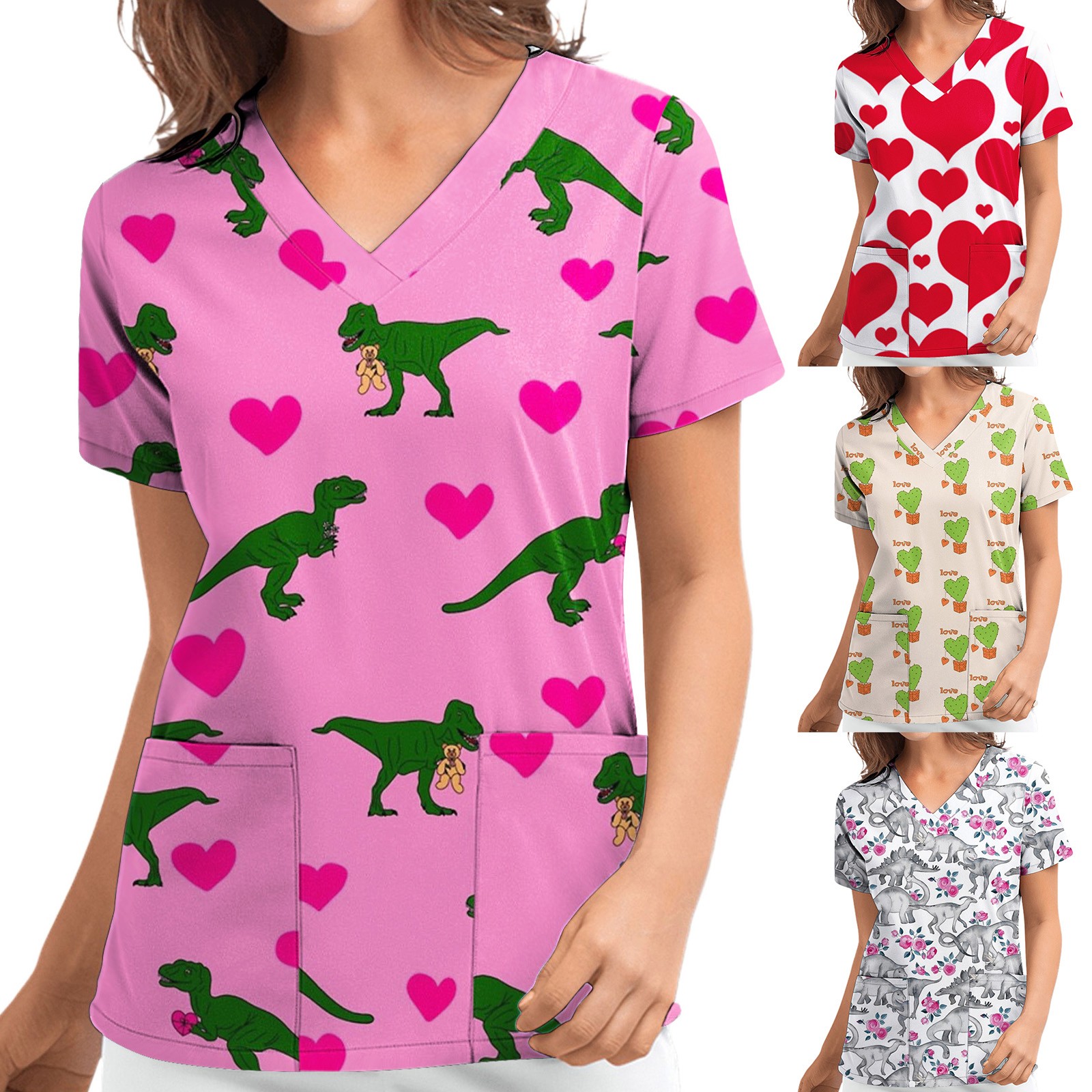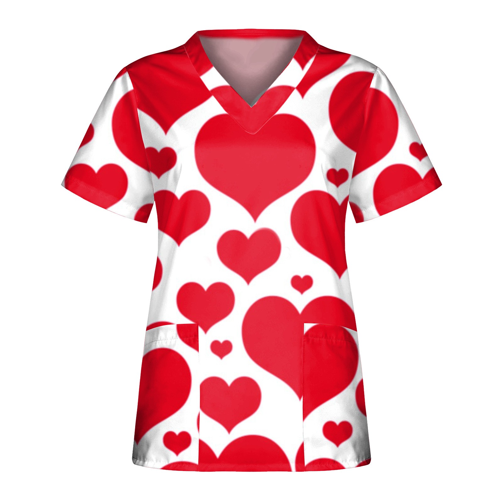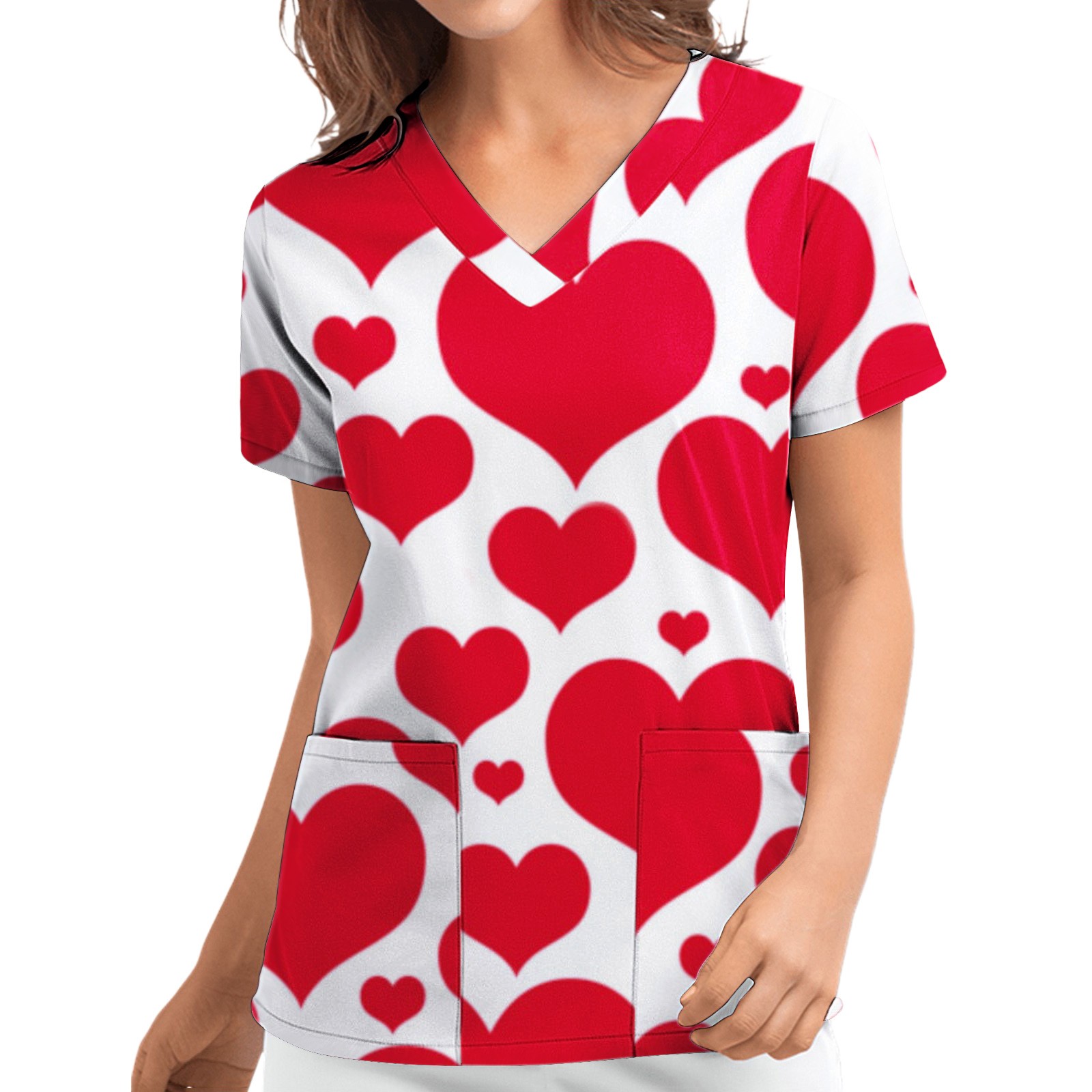 Туники для медсестры на День святого Валентина с принтом сердца, женские Топы с длинным рукавом, размер выше размера плюс, униформа для медсестры, Blusas Mujer De Moda 2022