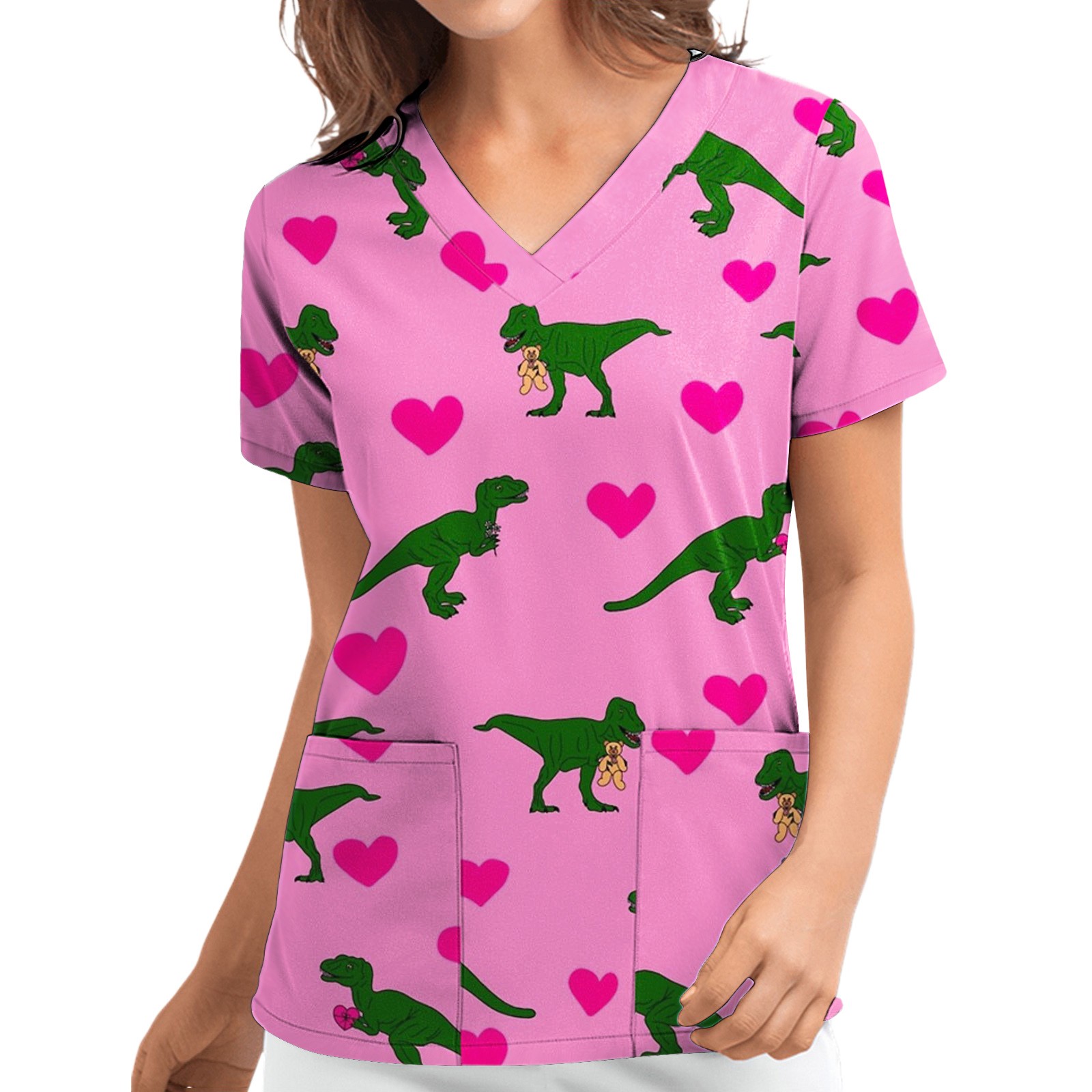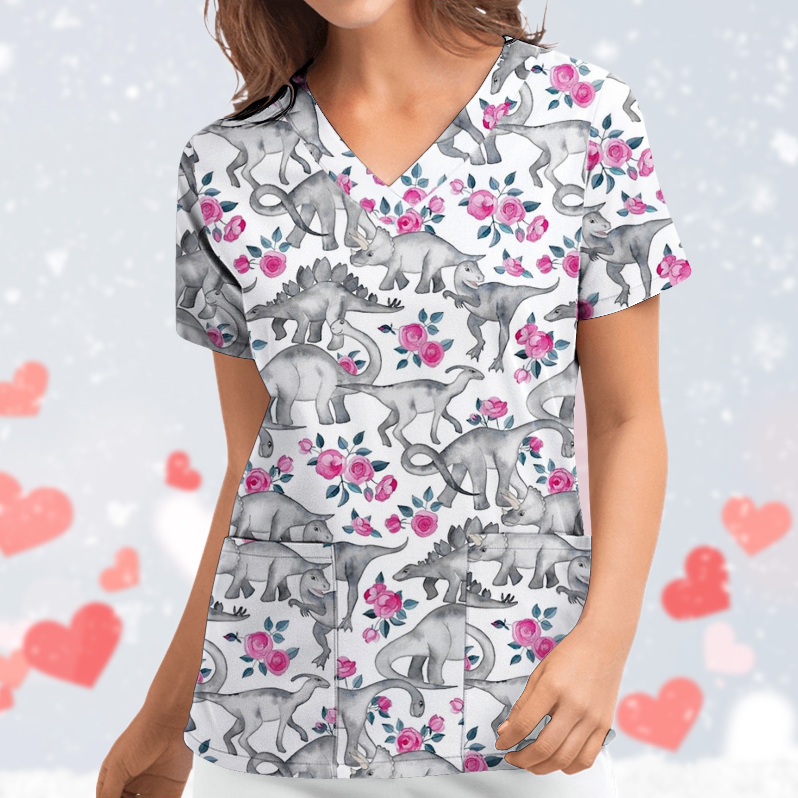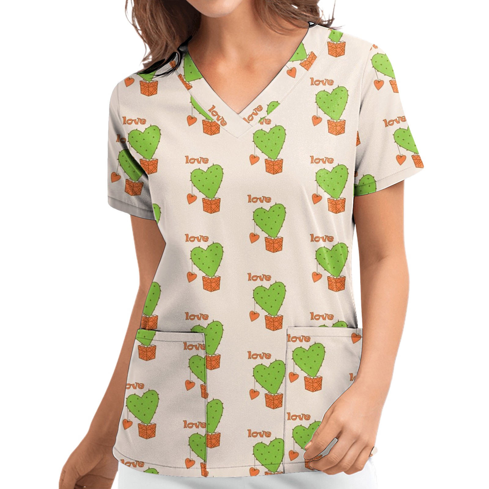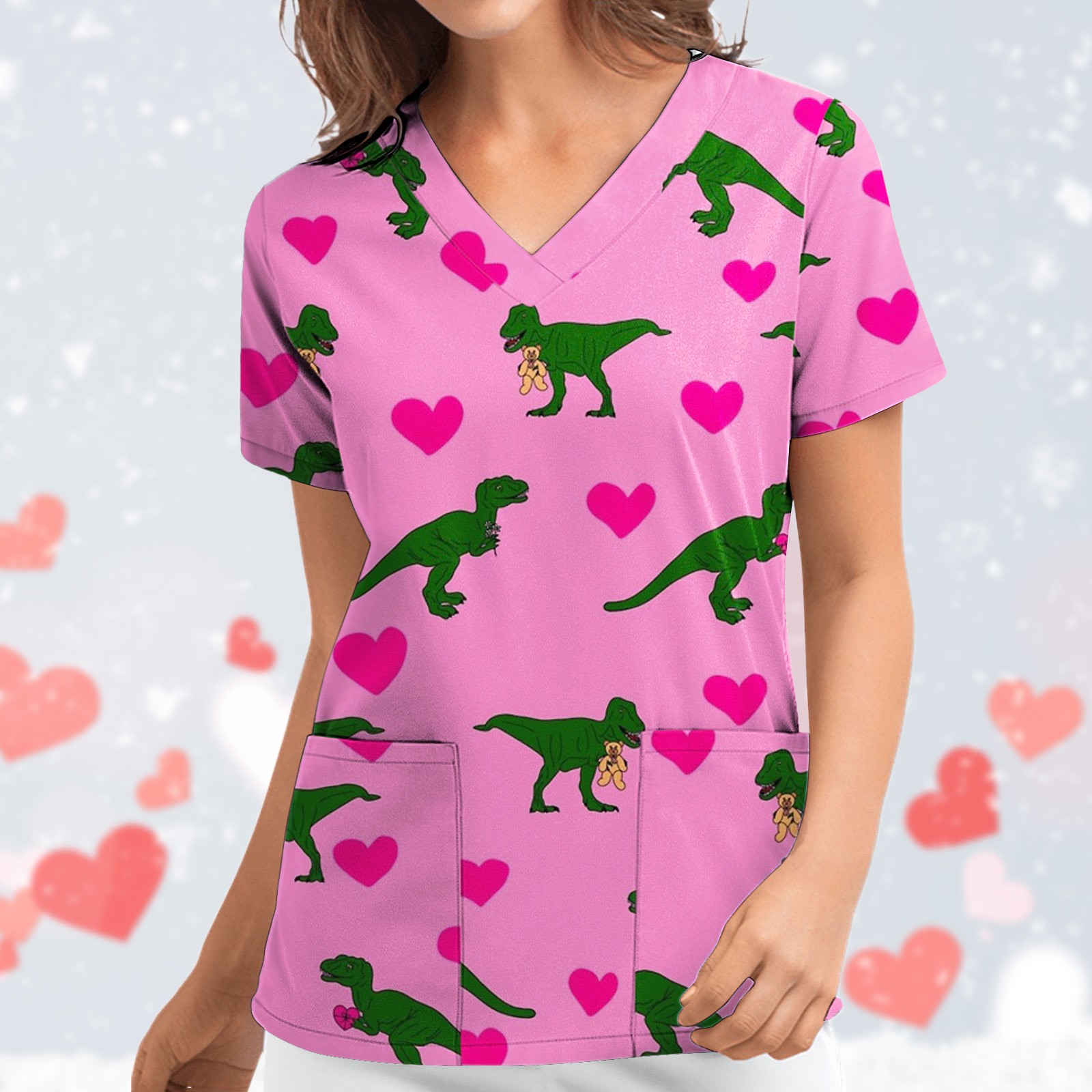 Туники для медсестры на День святого Валентина с принтом сердца, женские Топы с длинным рукавом, размер выше размера плюс, униформа для медсестры, Blusas Mujer De Moda 2022