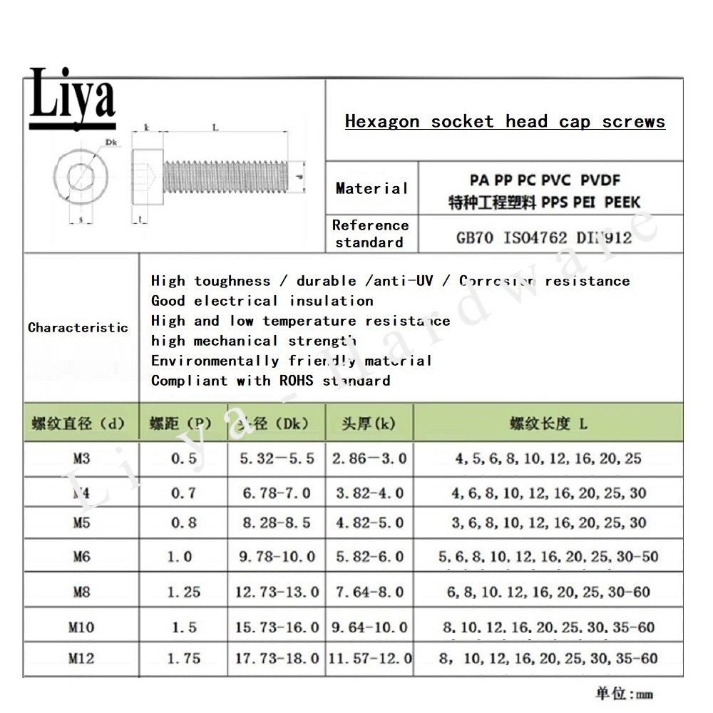 3-20 шт. M3 M4 M5 M6 M8 M10 полипропиленовые шестигранные винты с шестигранной головкой Винты DIN912 водонепроницаемые, антикоррозийные, химические