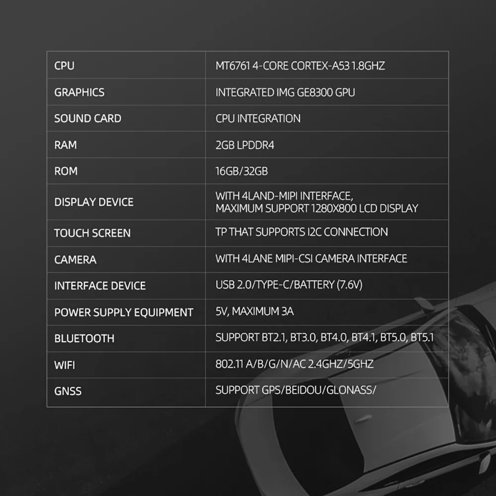10,2G RAM/ 32G ROM, поддержка Bluetooth и WiFi подключения