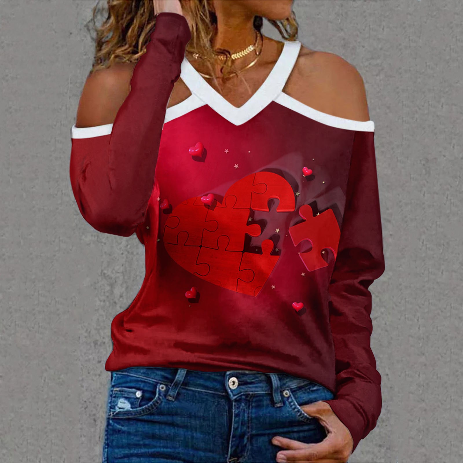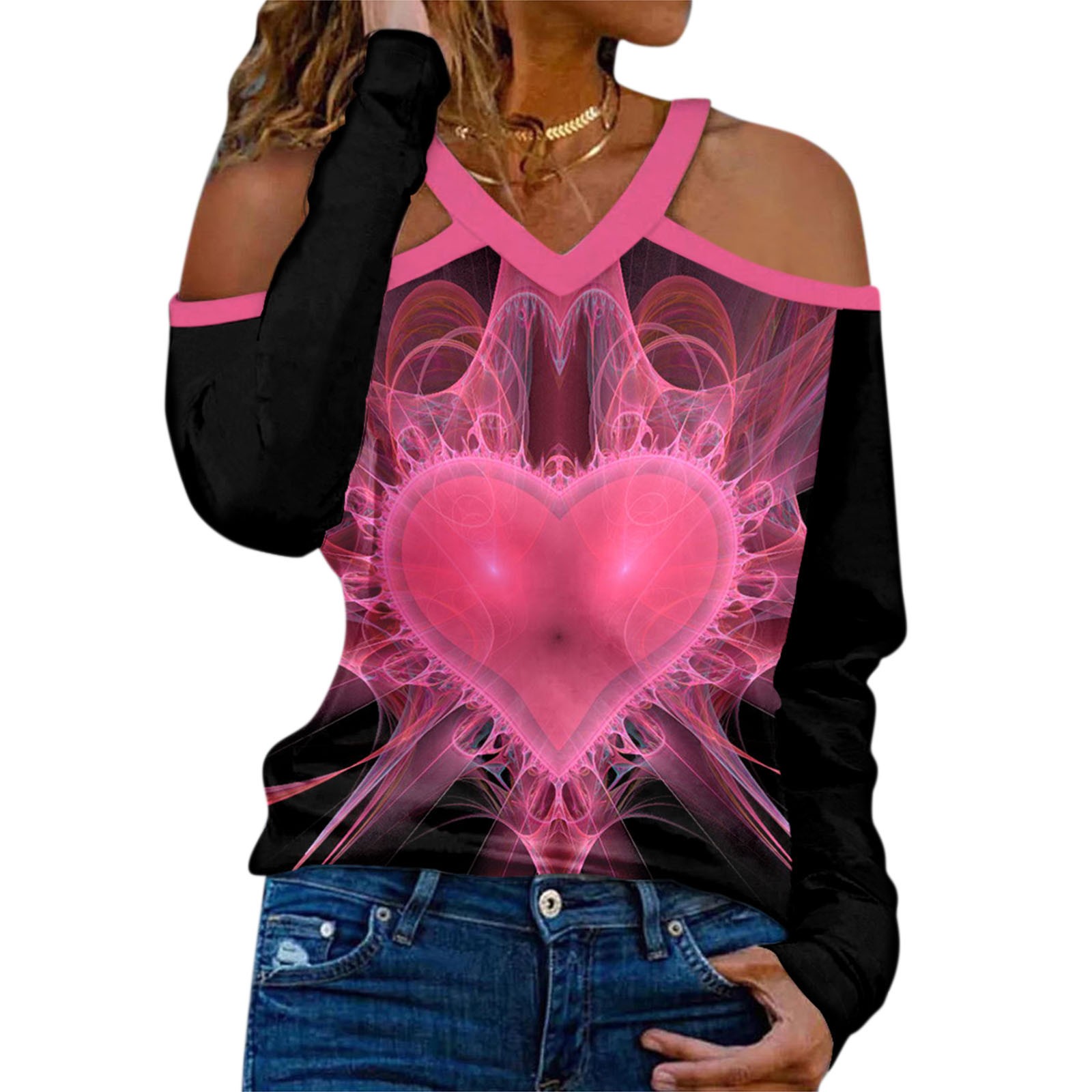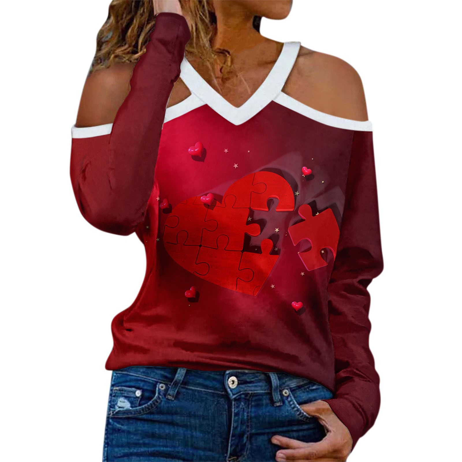 Женский Новый Холтер шеи без бретелек v-образным вырезом День Святого Валентина печати сексуальный топ с длинными рукавами