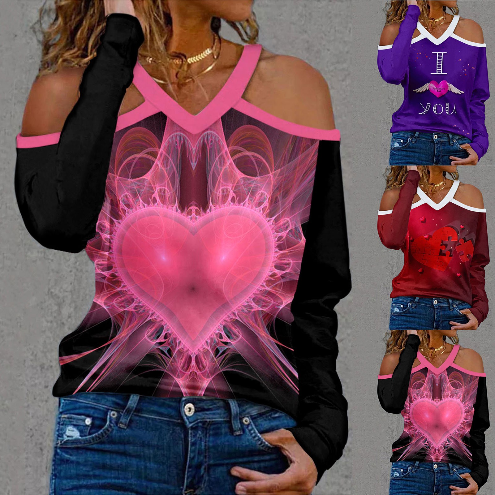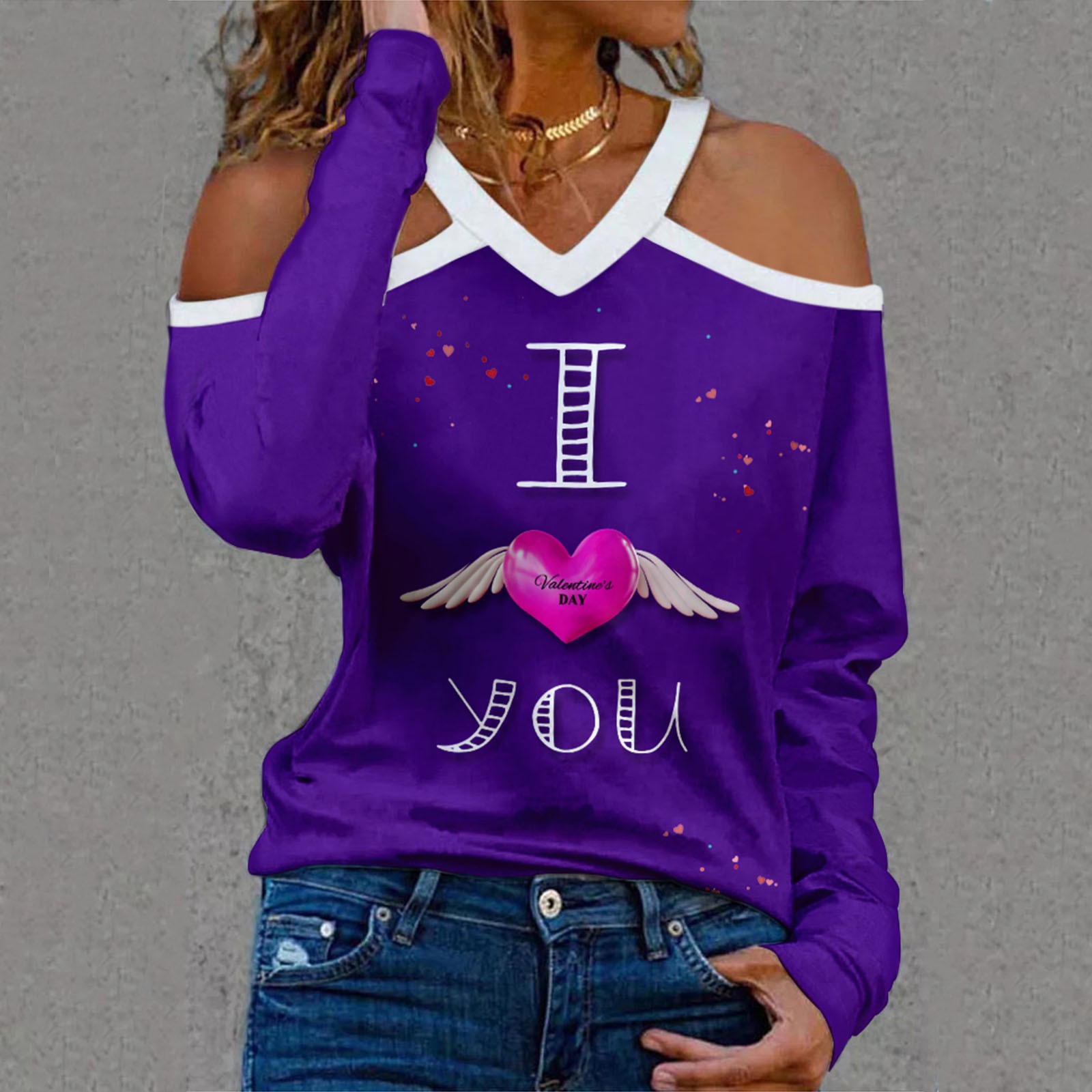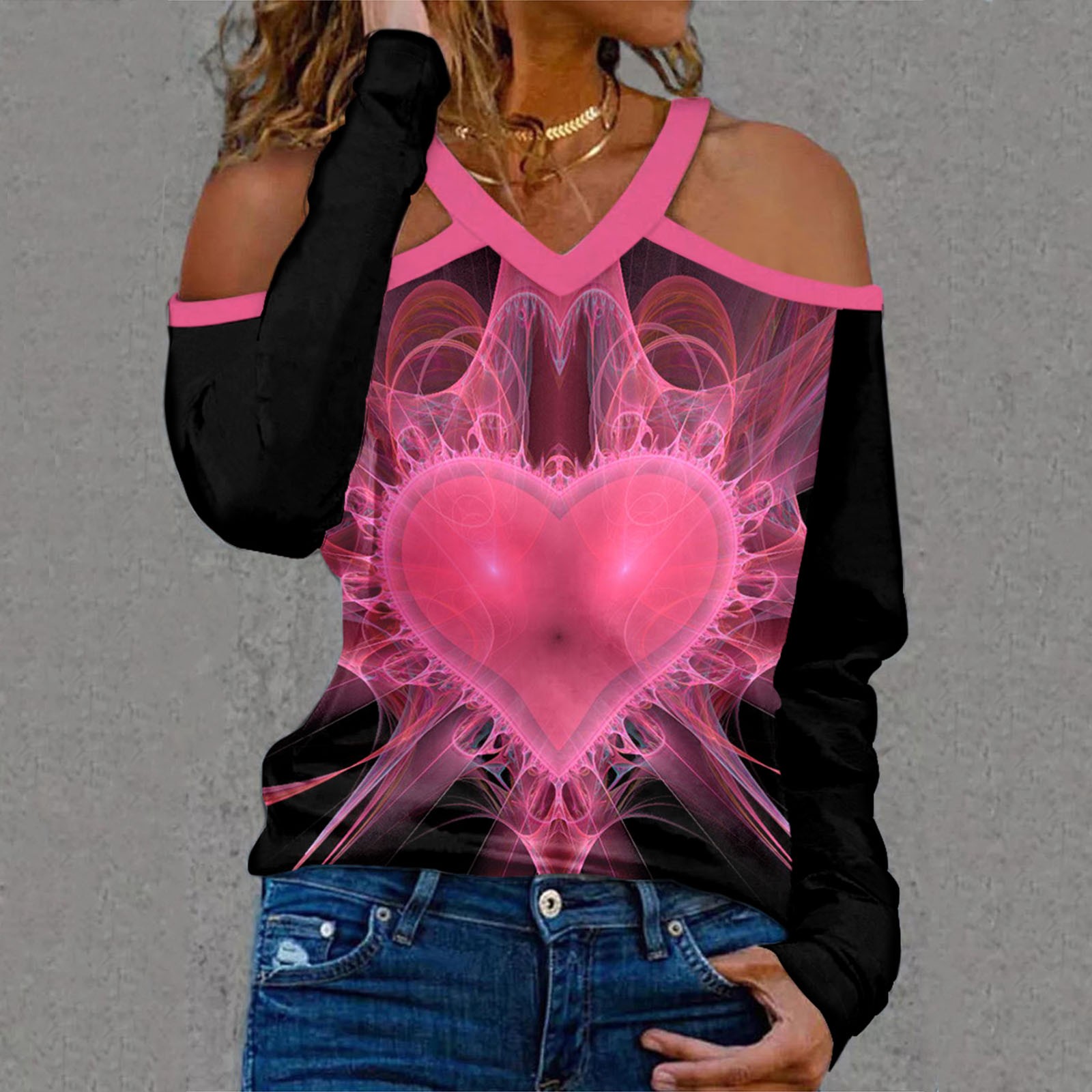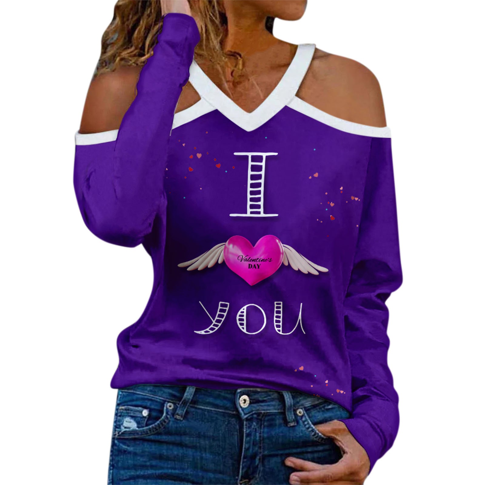 Женский Новый Холтер шеи без бретелек v-образным вырезом День Святого Валентина печати сексуальный топ с длинными рукавами