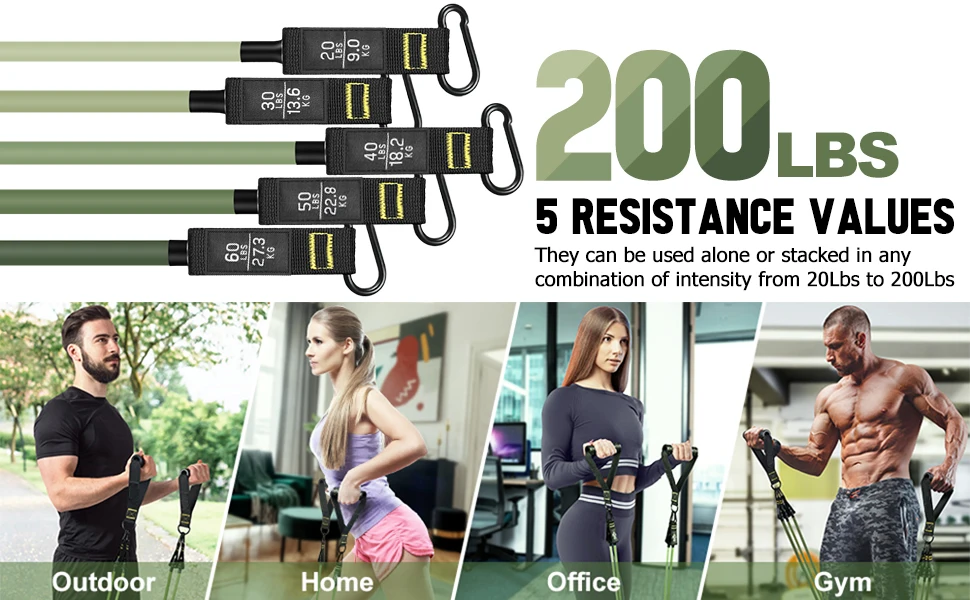 【Подходит для всех уровней Fitness】-Набор резинок сопротивления поставляется с 5 различными уровнями сопротивления: 20 фунтов, 30 фунтов, 40 фунтов 50 фунтов и 60 фунтов в 5 различных цветах. Вы можете использовать полосы независимо или в любой комбинации с максимальным уровнем сопротивления 150 фунтов. Может удовлетворить различные потребности в упражнениях, сочетая с разным уровнем сопротивления. Являетесь ли вы новичком или спортсменом, вы можете использовать его очень хорошо для занятий спортом.