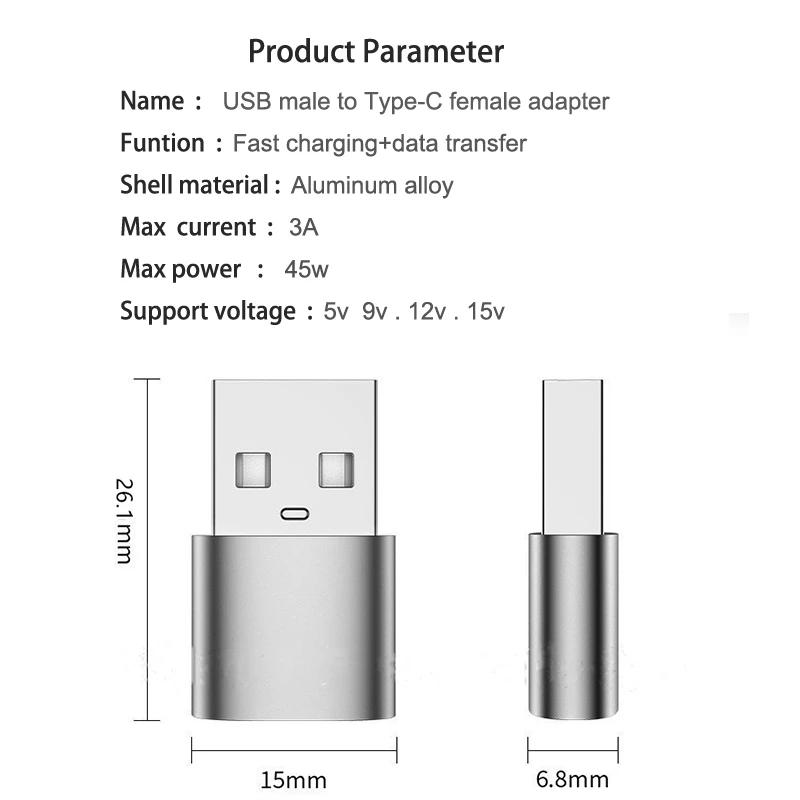 Адаптер для быстрой зарядки Type-C female To USB A male