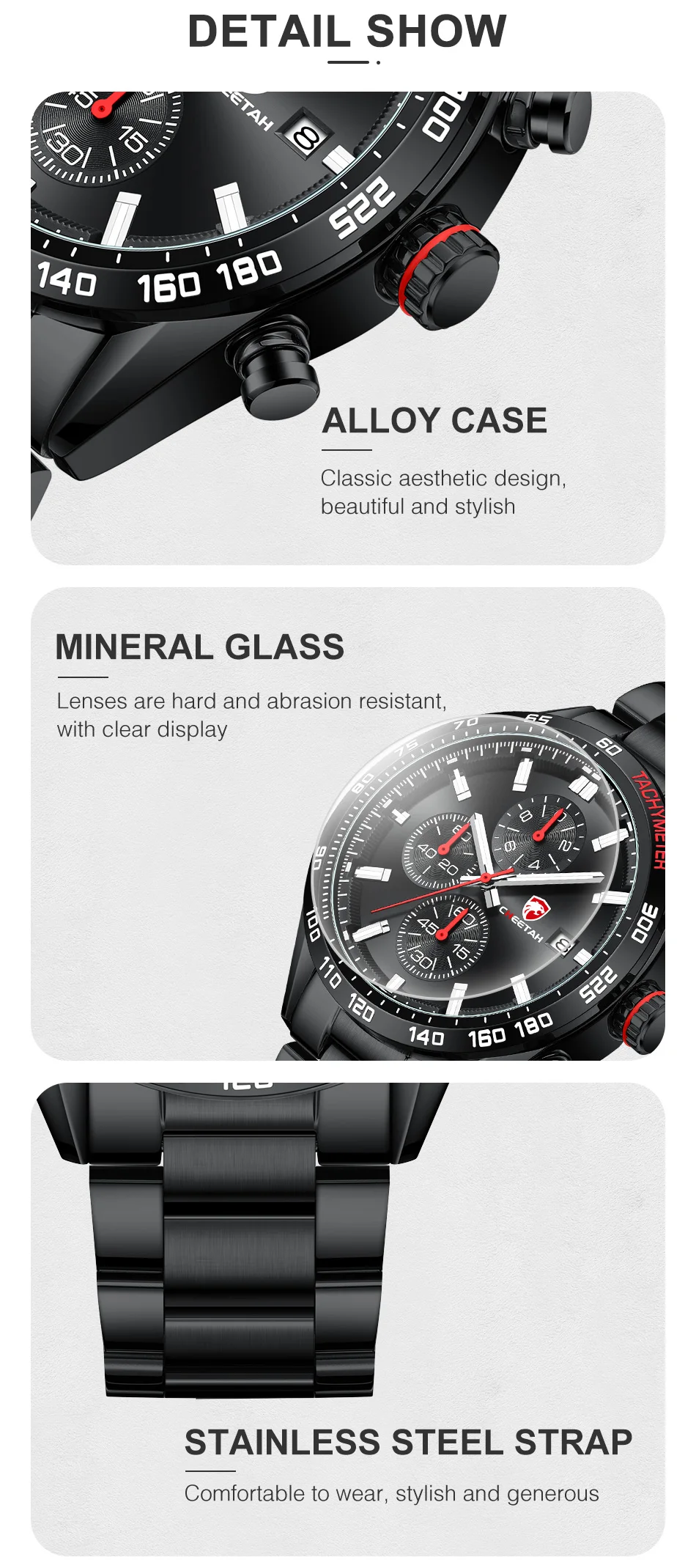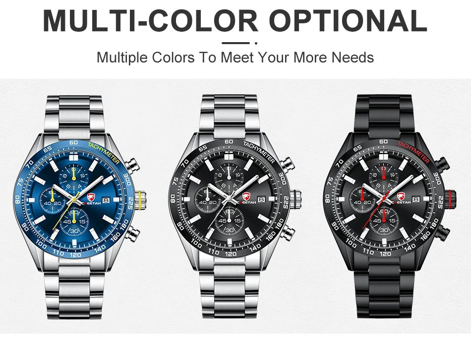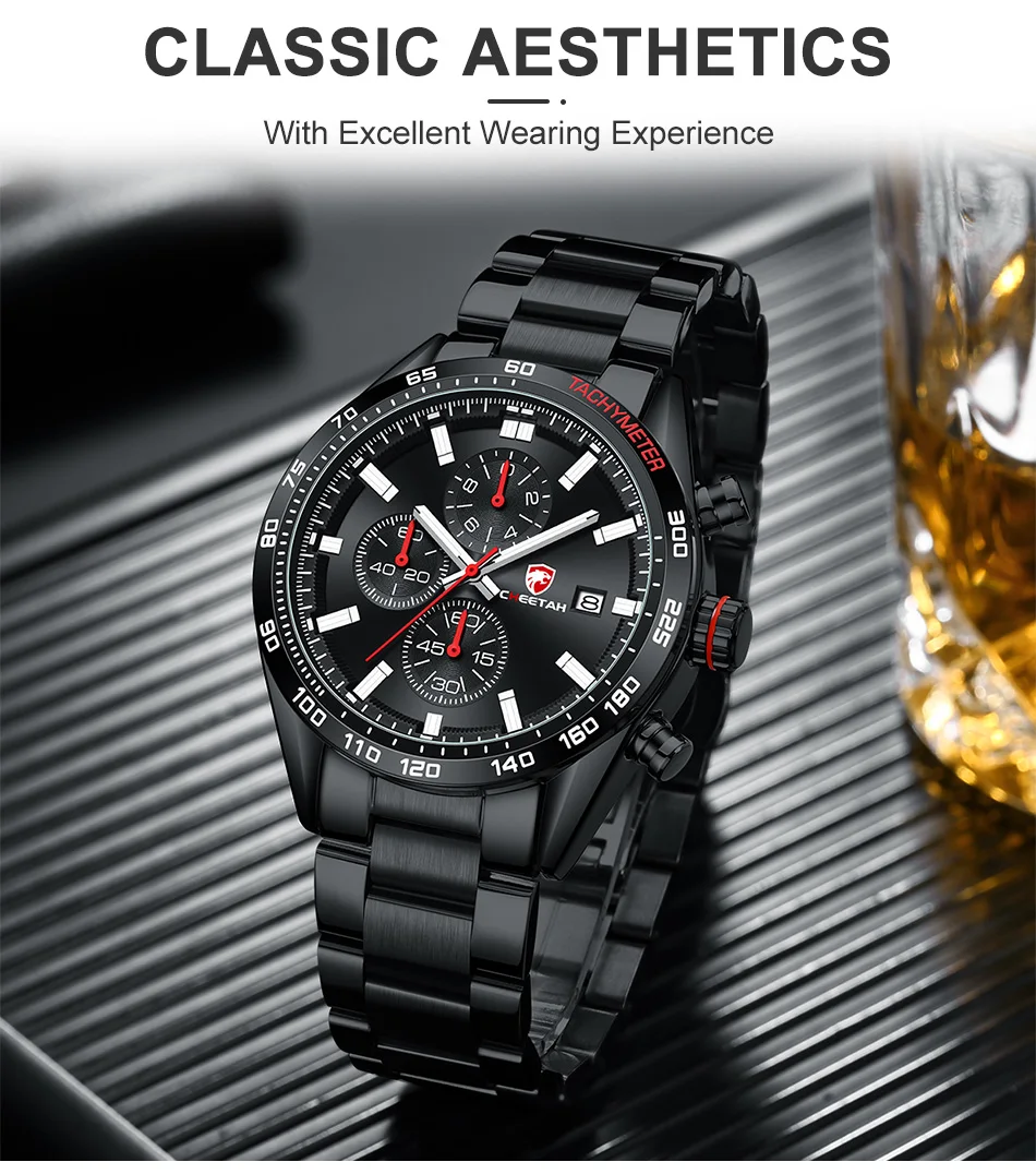 CHEETAH, новые часы для мужчин, водонепроницаемые, нержавеющая сталь, кварцевые, мужские часы, светящийся большой циферблат, спортивный хронограф, часы, мужские часы