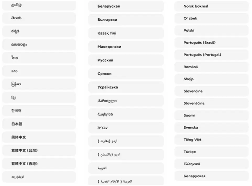 Поддерживаемые языки: английский, русский, французский, немецкий, испанский, польский, итальянский, португальский, турецкий, корейский, японский, арабский, украинский