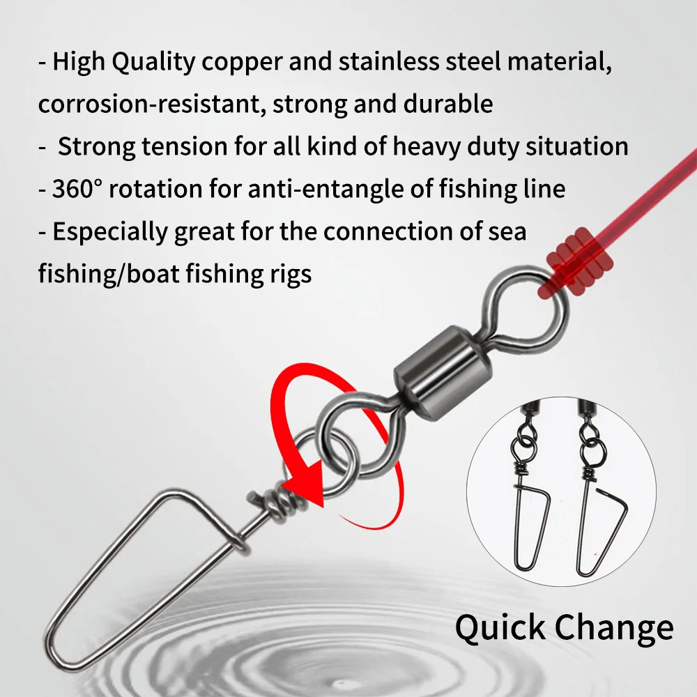 Свободно вращается: вращается на 360 градусов, вращается на высокой скорости, Рыбацкая оснастка вращается, визуализирует вашу приманку, плавает как настоящая рыба. Аттракцион больше рыб без скручивания лески.