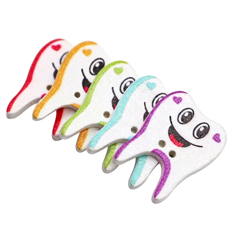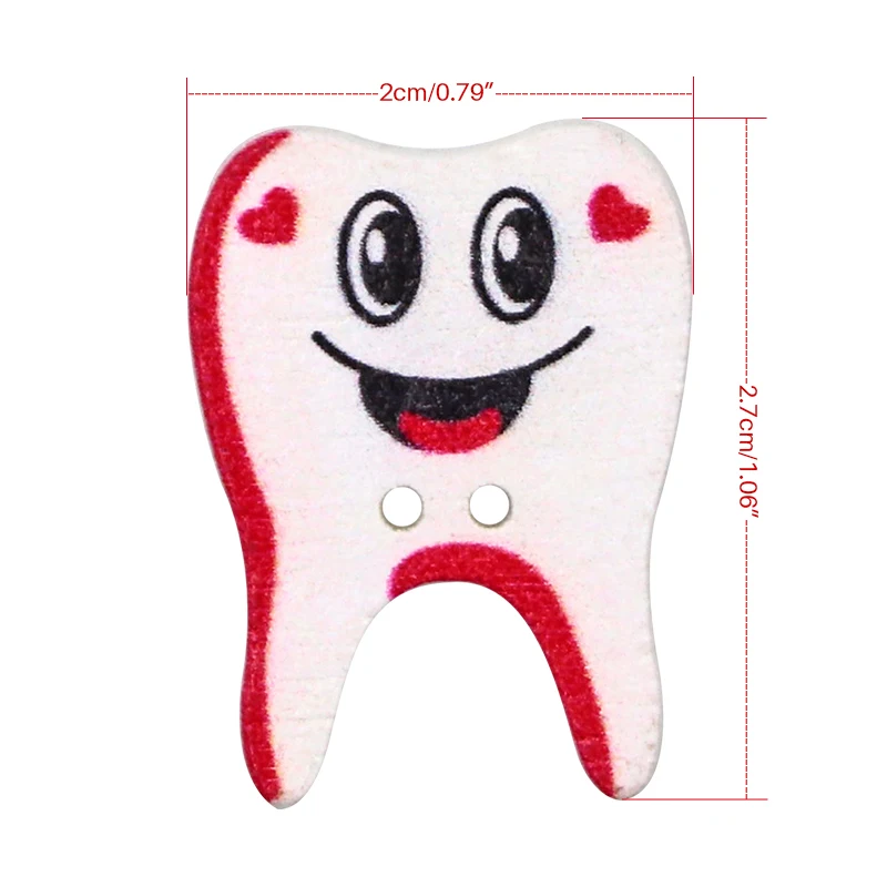 50 шт., кнопки в форме зуба из мультфильма, 2 отверстия, покраска деревянной кнопки, пошив скрапбукинга поделки, сделай сам