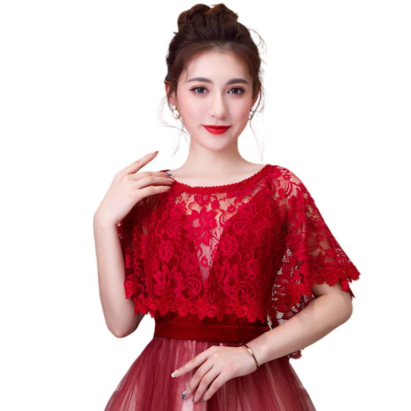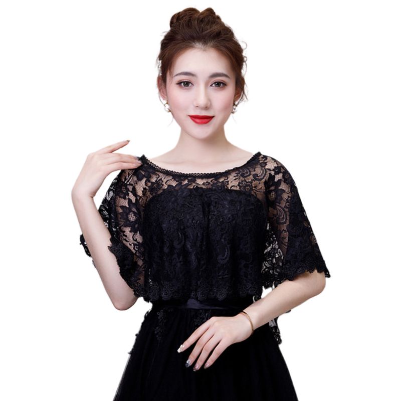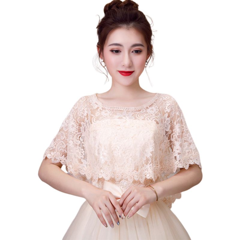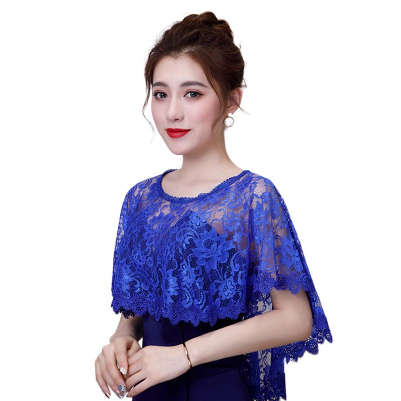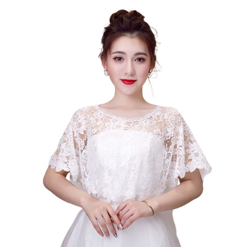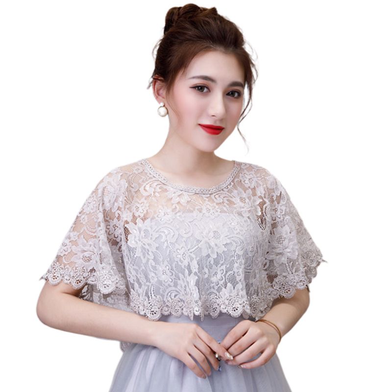Женская винтажная кружевная накидка с цветочным принтом, накидка с круглым вырезом, полупрозрачная шаль-болеро для невесты, однотонное летнее Болеро