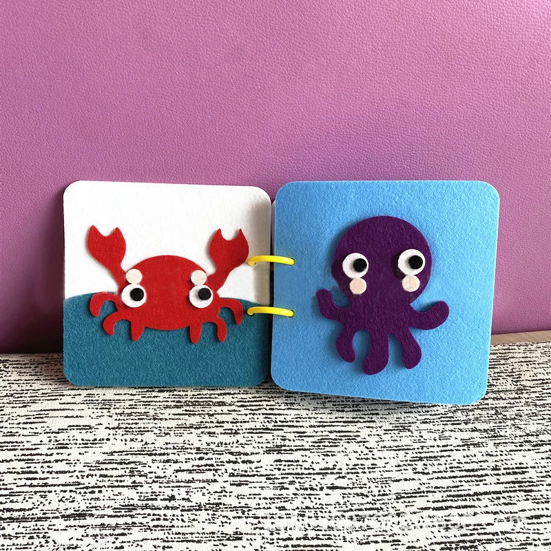 Мягкий, безопасный и прочный: тронутый из хлопка и мягкого сенсорного войлока плюс интерактивные аксессуары. Эта книга ручной работы мягкая, но очень прочная.