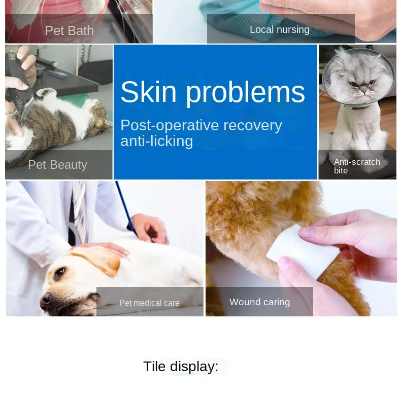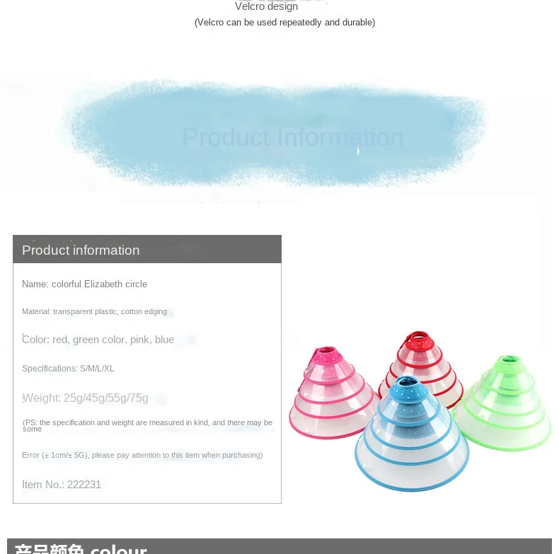 Этот продукт хорошо защищает кожу домашних животных от заболеваний, красоты, хирургических процедур и зуда ран в процессе хирургического заживления и заживления, предотвращая укусывание ран домашними животными. Ношение может предотвратить укусы при купании и уходе; В то же время, это удобно для косметических операций.