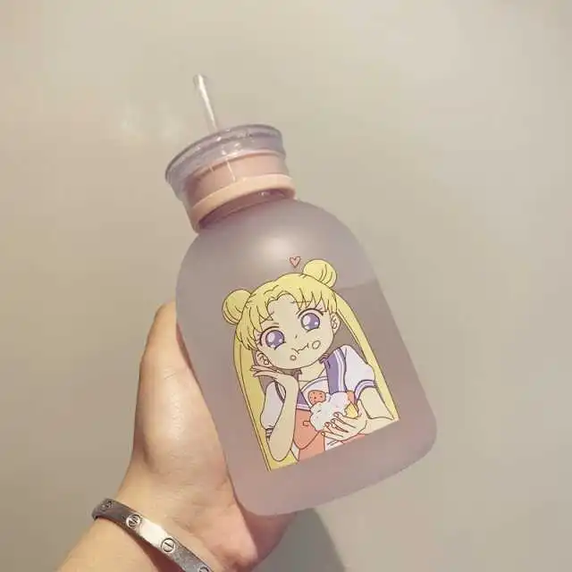 Аниме Луна косплей реквизит Tsukino Усаги мультфильм печатных пластиковые чашки воды Kawaii соломенный термос чашка