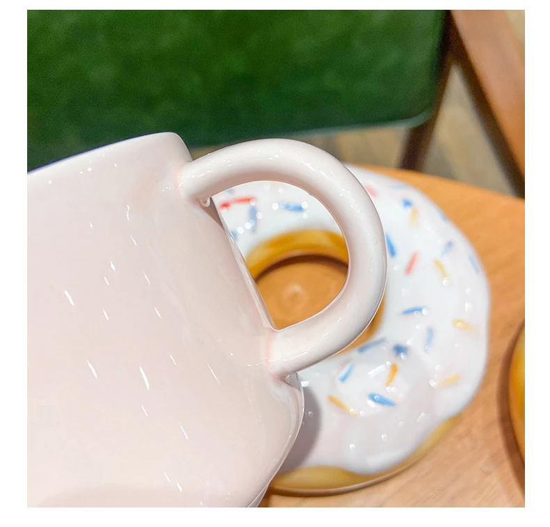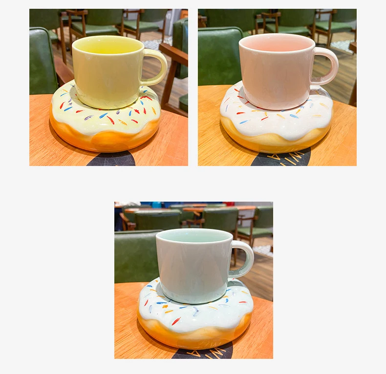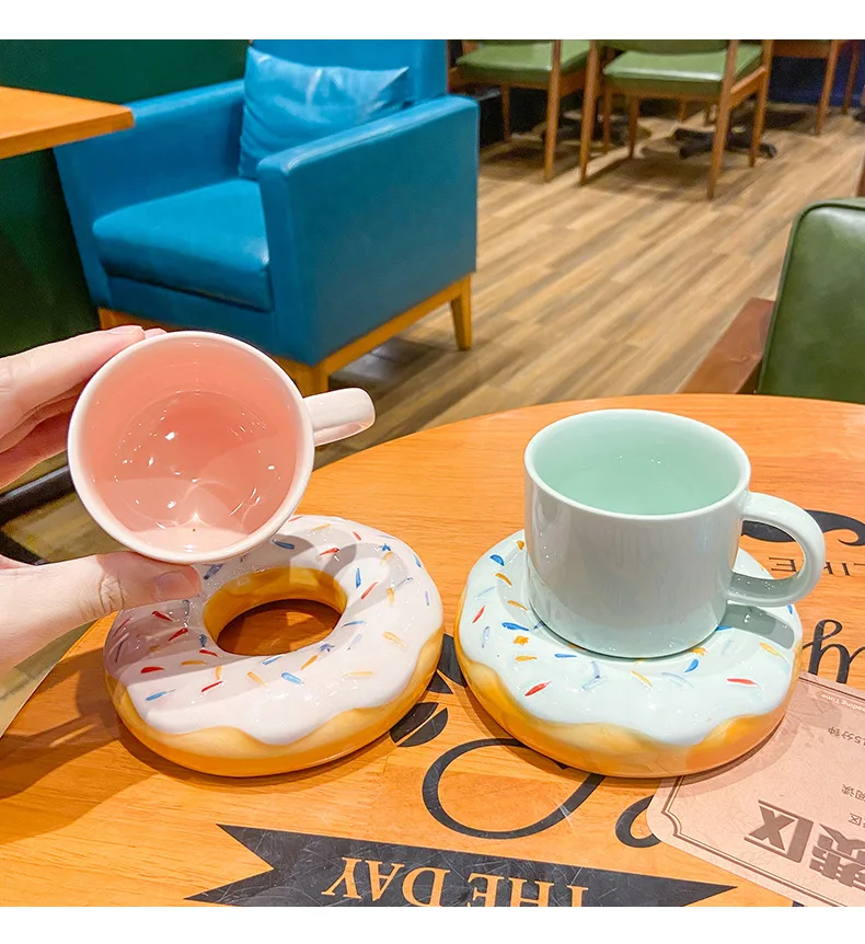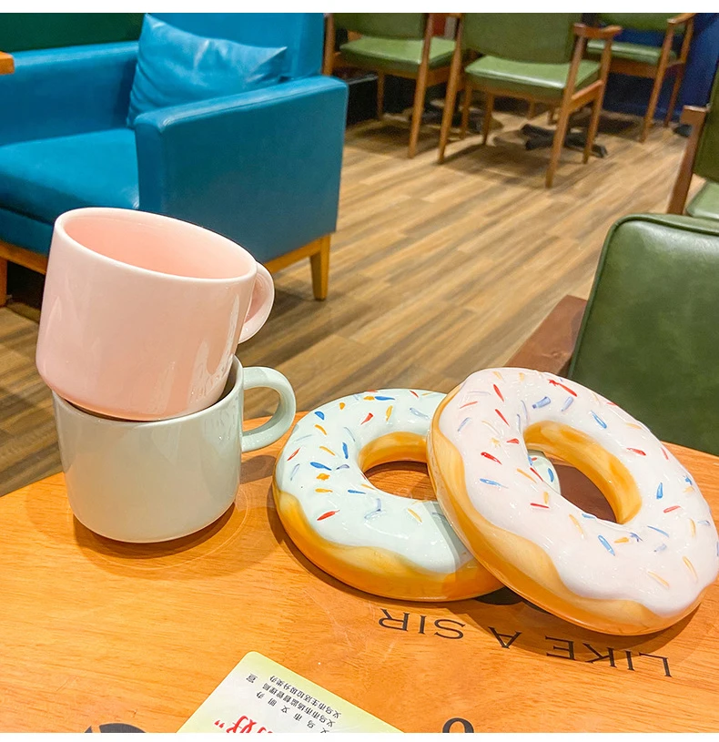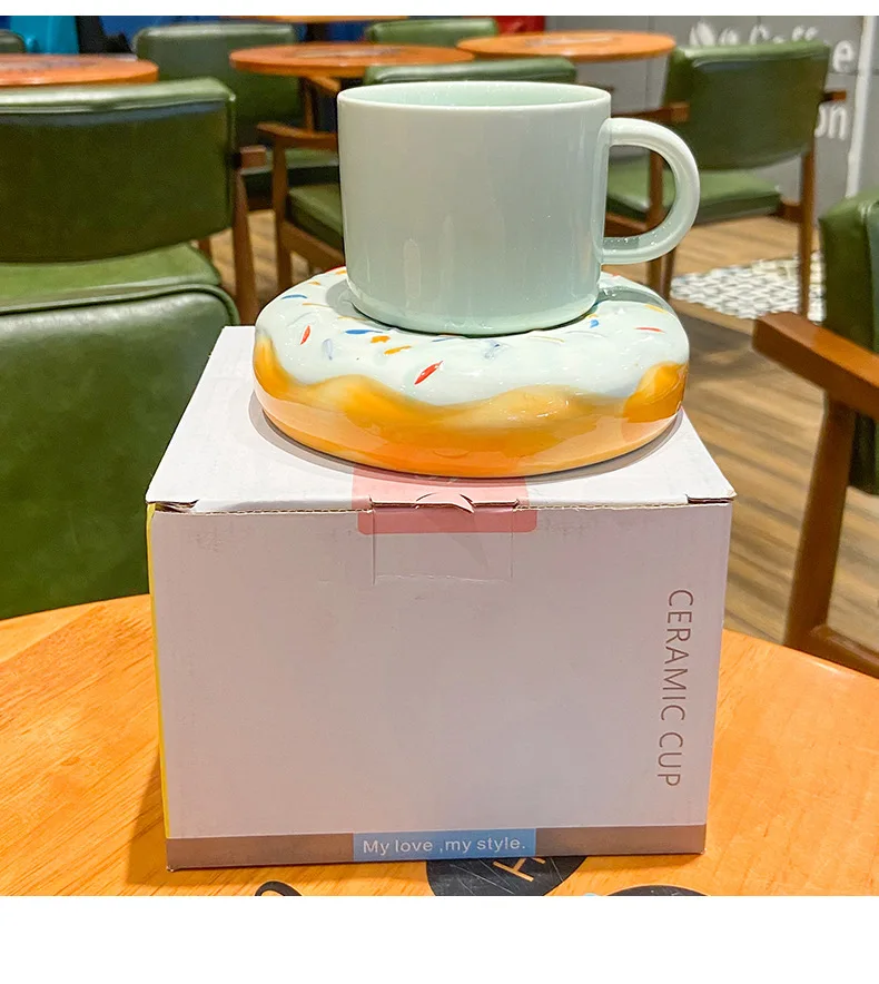 Кофейная кружка и блюдце с пончиком, простая чашка для завтрака, молочный послеобеденный чай, керамическая чашка, 210 мл, креативная кружка, офисный домашний подарок для девочки