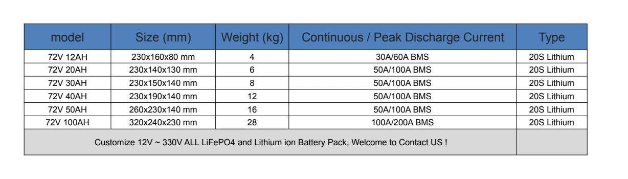 Емкость: 12Ah/20Ah/30Ah/40Ah/50Ah/100Ah