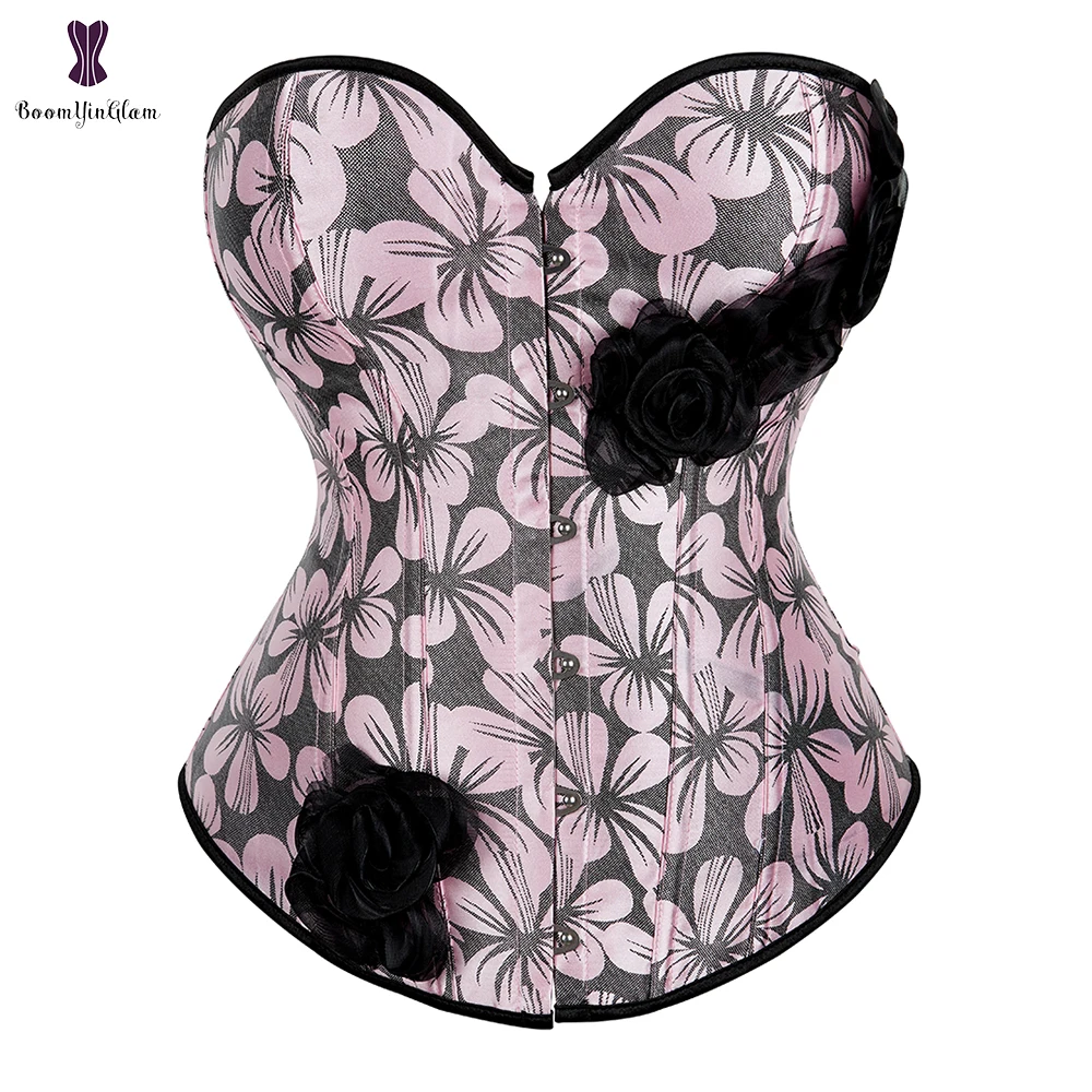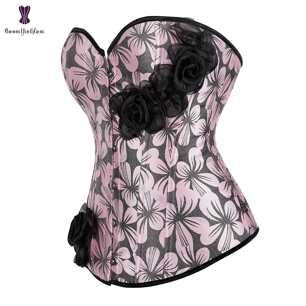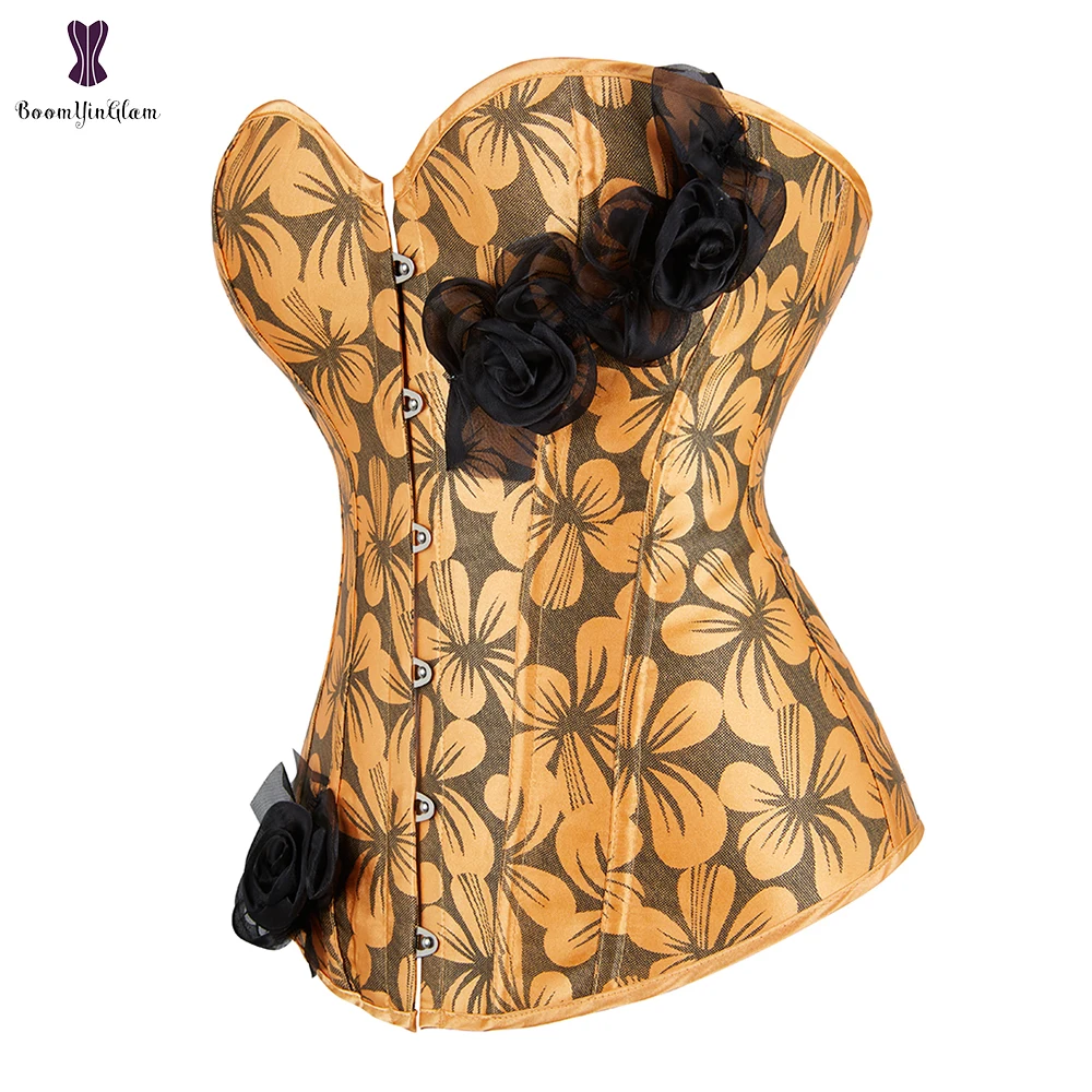 Элегантный корсет с розовым цветком, корсет, розовый, желтый, синий, Цветочный корсет с Бюстье баской, корсетный корсет