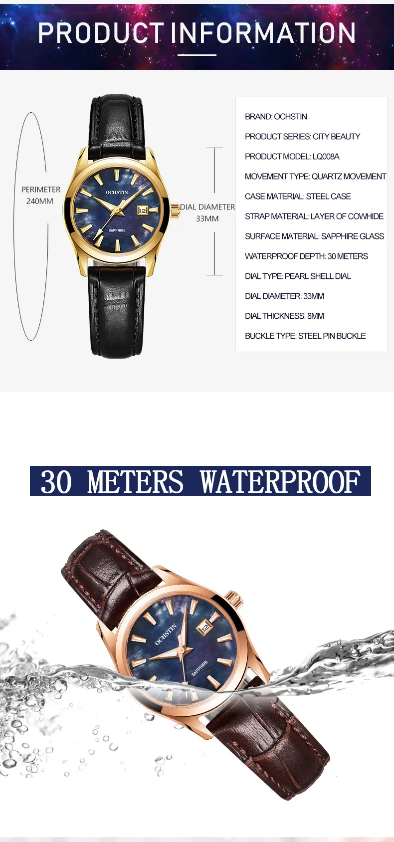 Точное хранение времени, японский кварцевый механизм, обеспечивает точное и точное хранение времени. Красивый перламутровый корпус Циферблат женский чехол для часов толщина 8 мм с диаметром 33 мм.