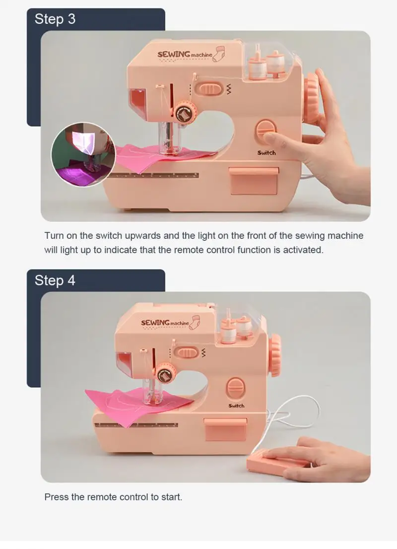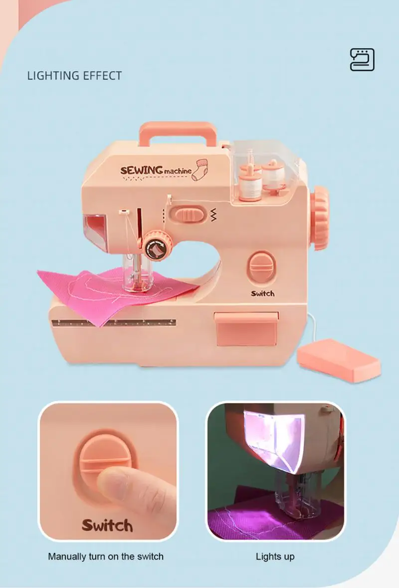 Игрушка для швейной машины может быть использована для разработки детской собственной маленькой одежды или кошельков и т. д. для пришивания креативных сшитых пластырей, что помогает улучшить координацию рук и глаз детей