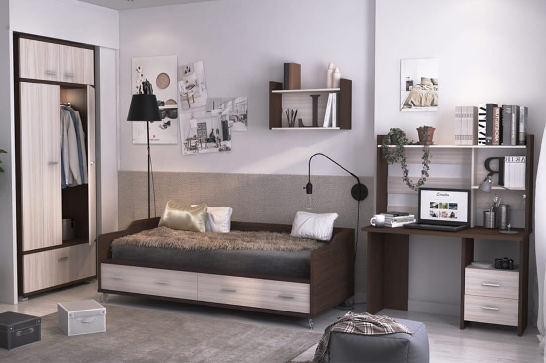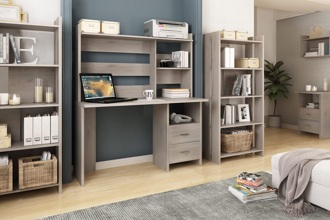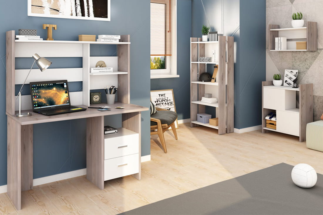 Прямой компьютерный стол с надстройкой. Имеет вместительную встроенную тумбу с выдвижными ящиками. Стол и надстройка универсальные, правая или левая сторона определяется при сборке.Товар под заказ.