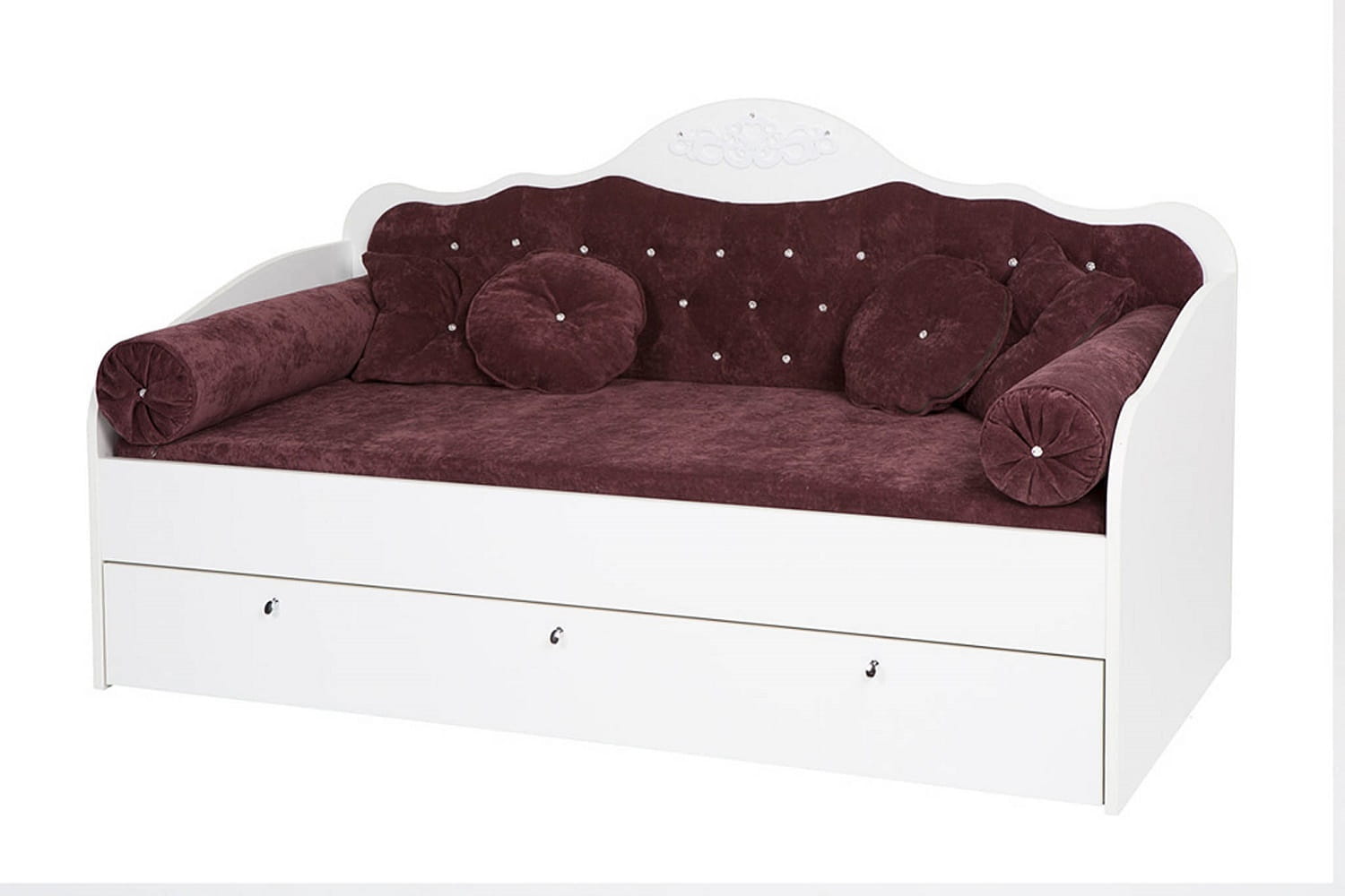 Отделка велюр и стразы. Стильный дизайн.Выкатной ящик продается отдельно.Валики и подушки и матрас в комплектацию не входят.