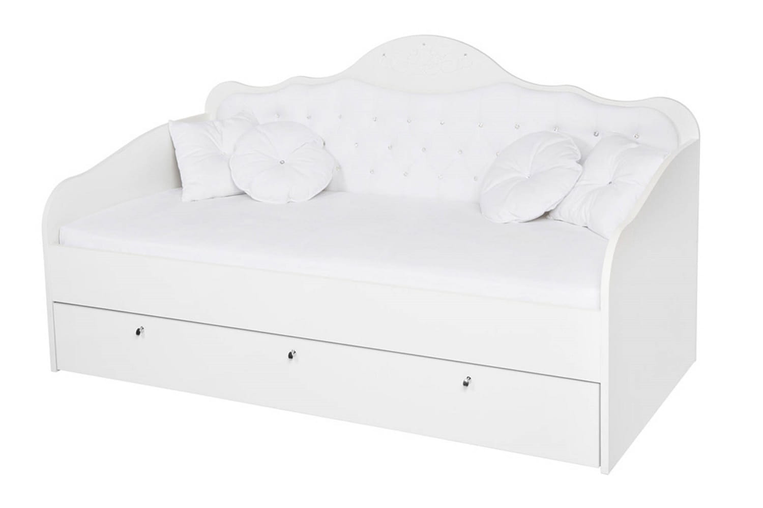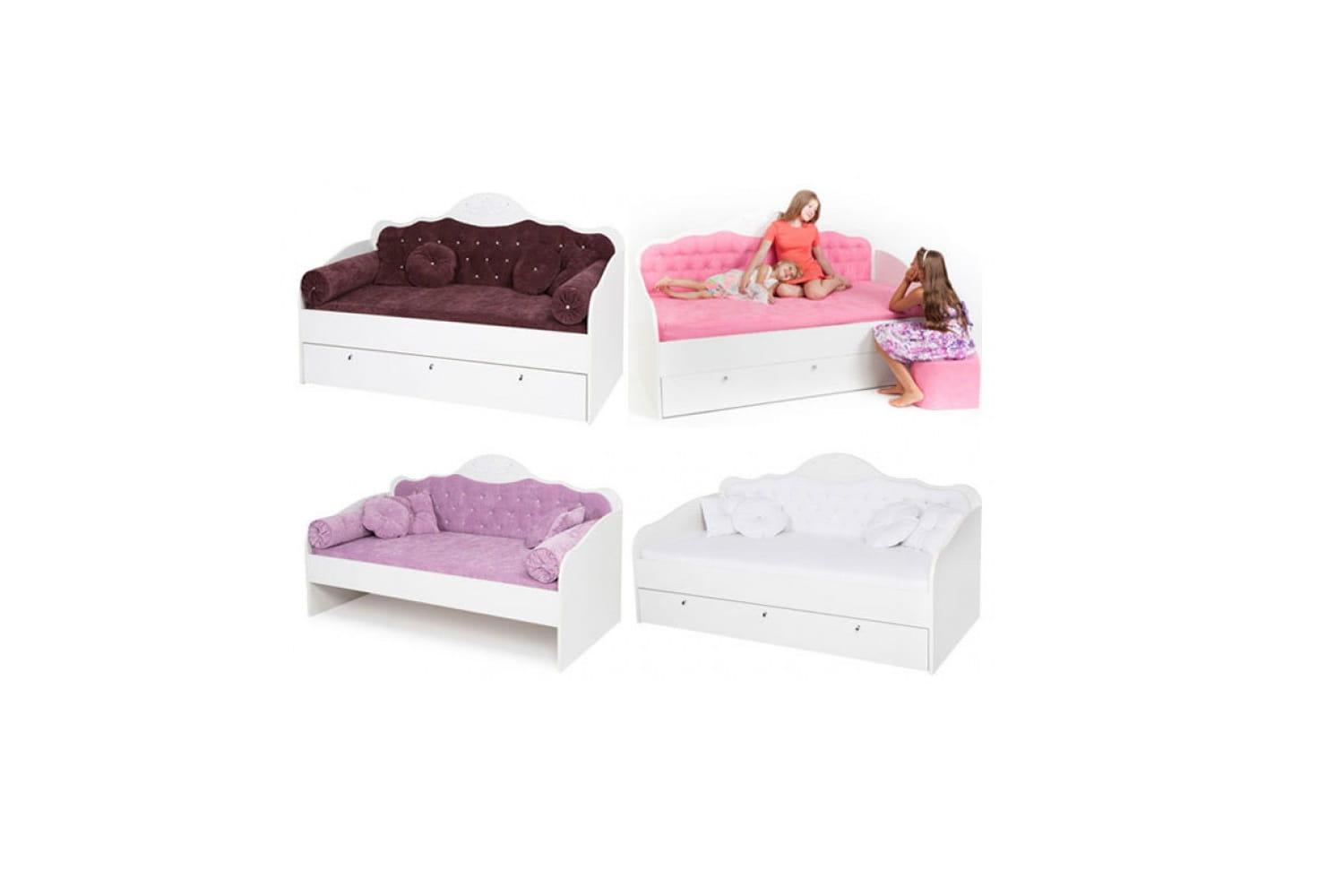 Отделка велюр и стразы. Стильный дизайн.Выкатной ящик продается отдельно.Валики и подушки и матрас в комплектацию не входят.