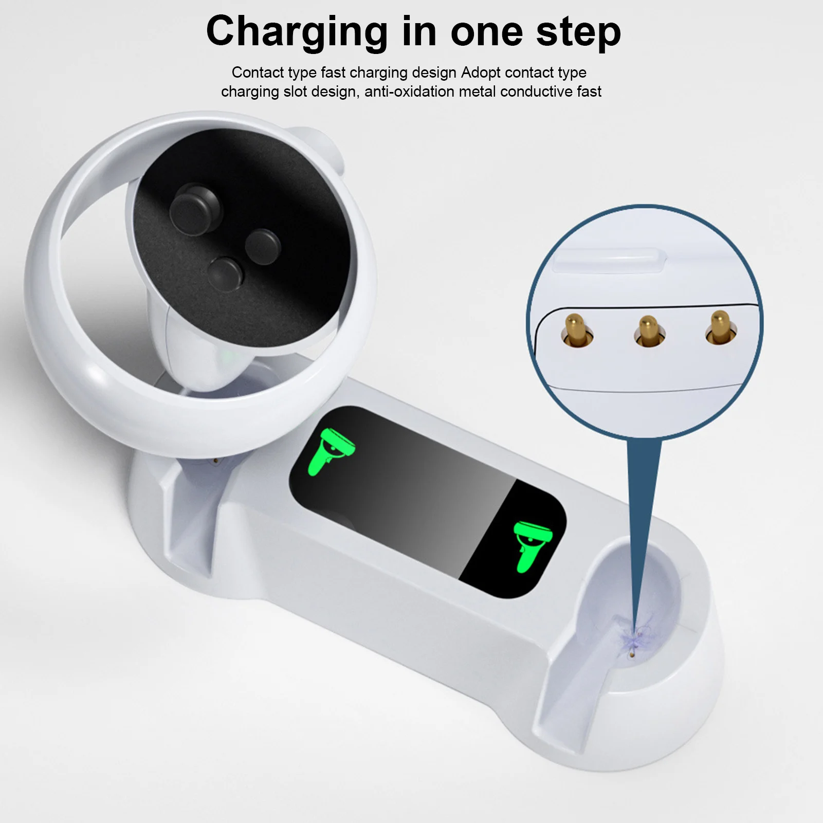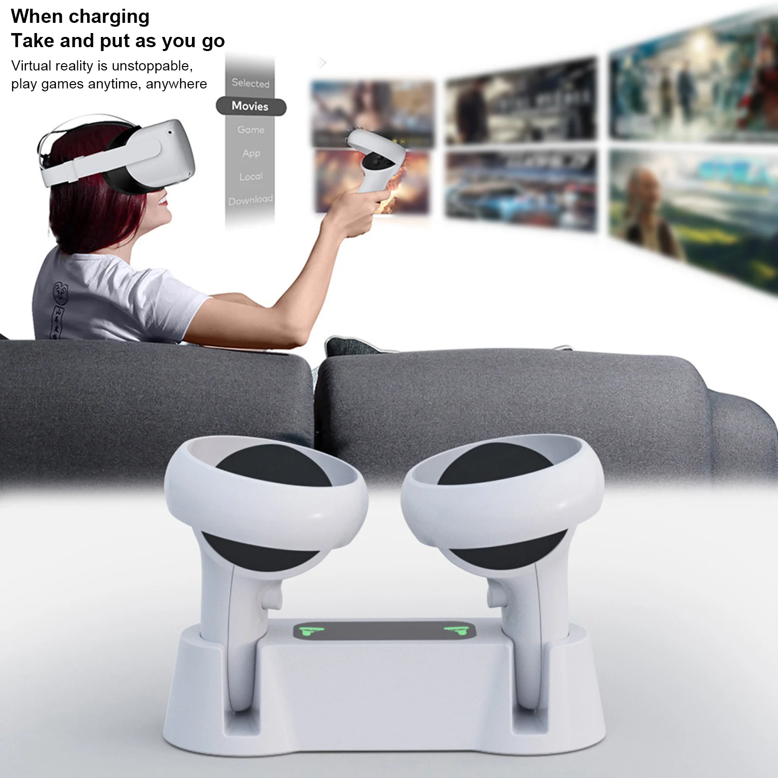 1. Предназначен для контроллера Quest 2: Подставка для зарядки предназначена специально для контроллера Quest 2. Он может заряжать левый и правый сенсорные контроллеры одновременно. Это первый выбор для игроков виртуальной реальности!Если вы хотите купить оптом, пожалуйста, свяжитесь с нами. Мы предложим вам лучшую цену.