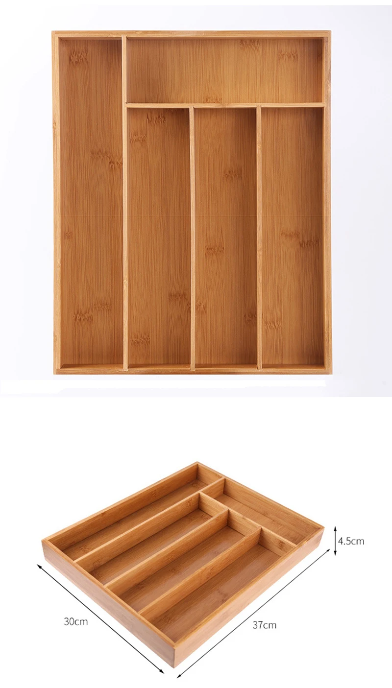 1. Деревянный органайзер для кухонных ящиков и держатель для столовых приборов, экологичный и прочный.