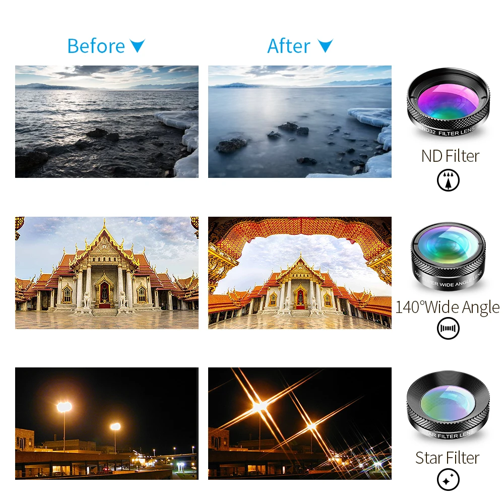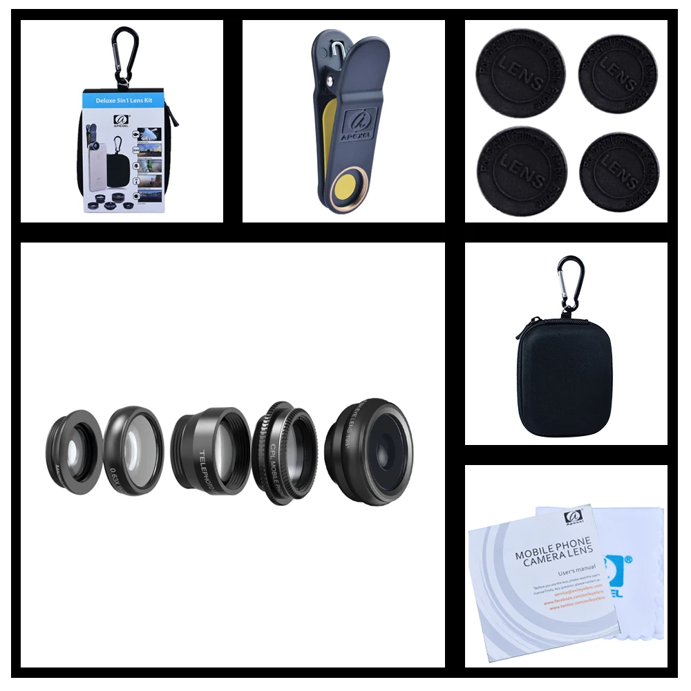 APEXEL 11 в 1 Набор объективов для камеры телефона рыбий глаз Широкоугольный макро объектив CPL ND фильтр калейдоскоп и телескоп объектив для смартфона