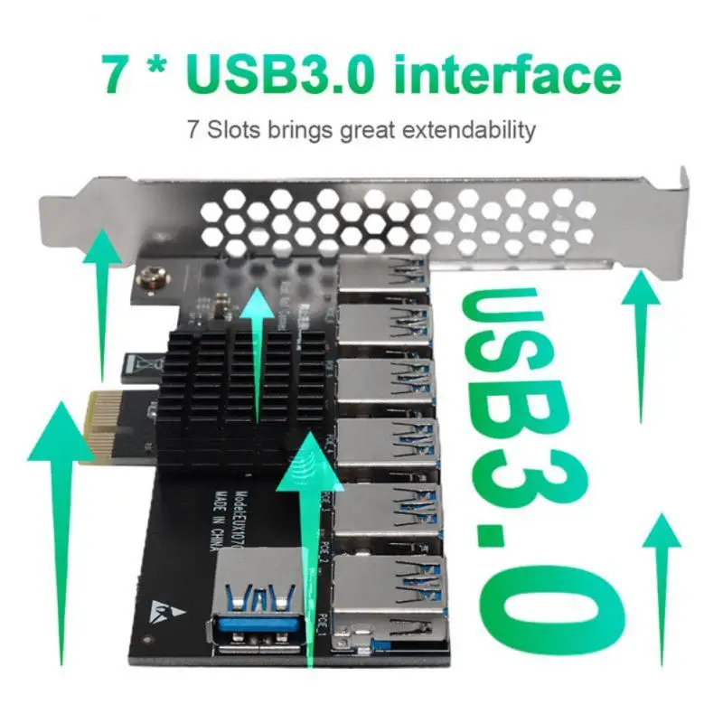 Золотая переходная карта USB3.0 для майнинга 1*7 портов