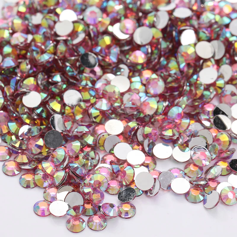 Хорошее качество:Круглые стразы с плоской спинкой имеют красивые формы и красивые огранки, камни из драгоценных камней изготовлены из высококачественного полимерного материала с переливающимся цветом