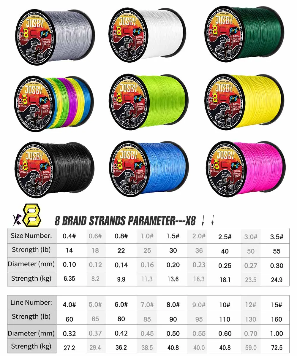 Номер лески: 0,8 #; 1,0 #; 1,5 #; 2,0 #; 2,5 #; 3,0 #; 3,5 #; 4,0 #; 5,0 #; 6,0 #; 8,0 #