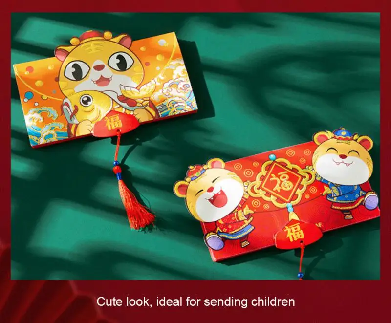 Красный конверт китайский новогодний декор 2022 Тигр HongBao красный Карманный конверт новогодний Тигр Весенний фестиваль красный пакет