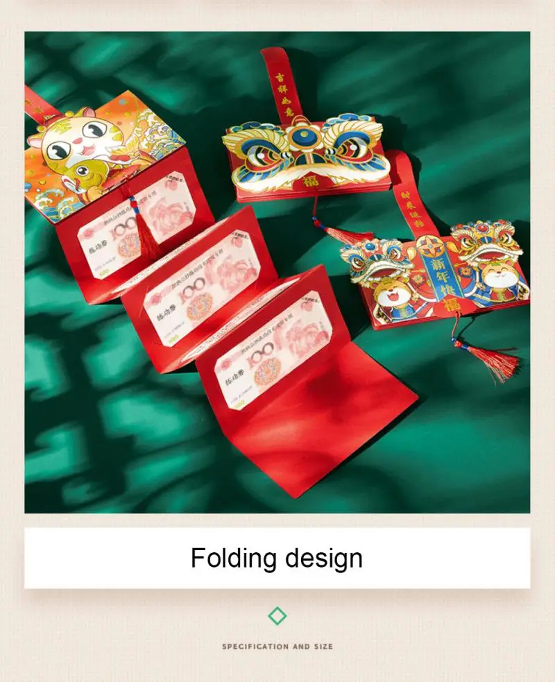 Сложенный красный конверт подарит людям чувство удивления после разворачивания, и это также очень креативный новогодний красный конверт.
