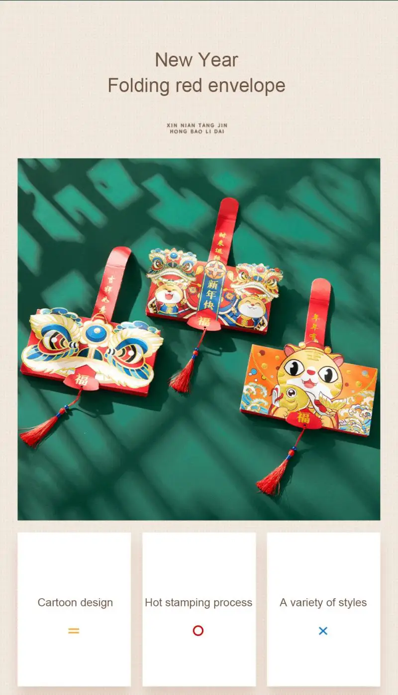 Красные конверты в китайском новогоднем стиле передают всем блага и стремление к лучшей жизни. Обязательный подарок для детей и пожилых людей, красные конверты делают новый год более приятным.