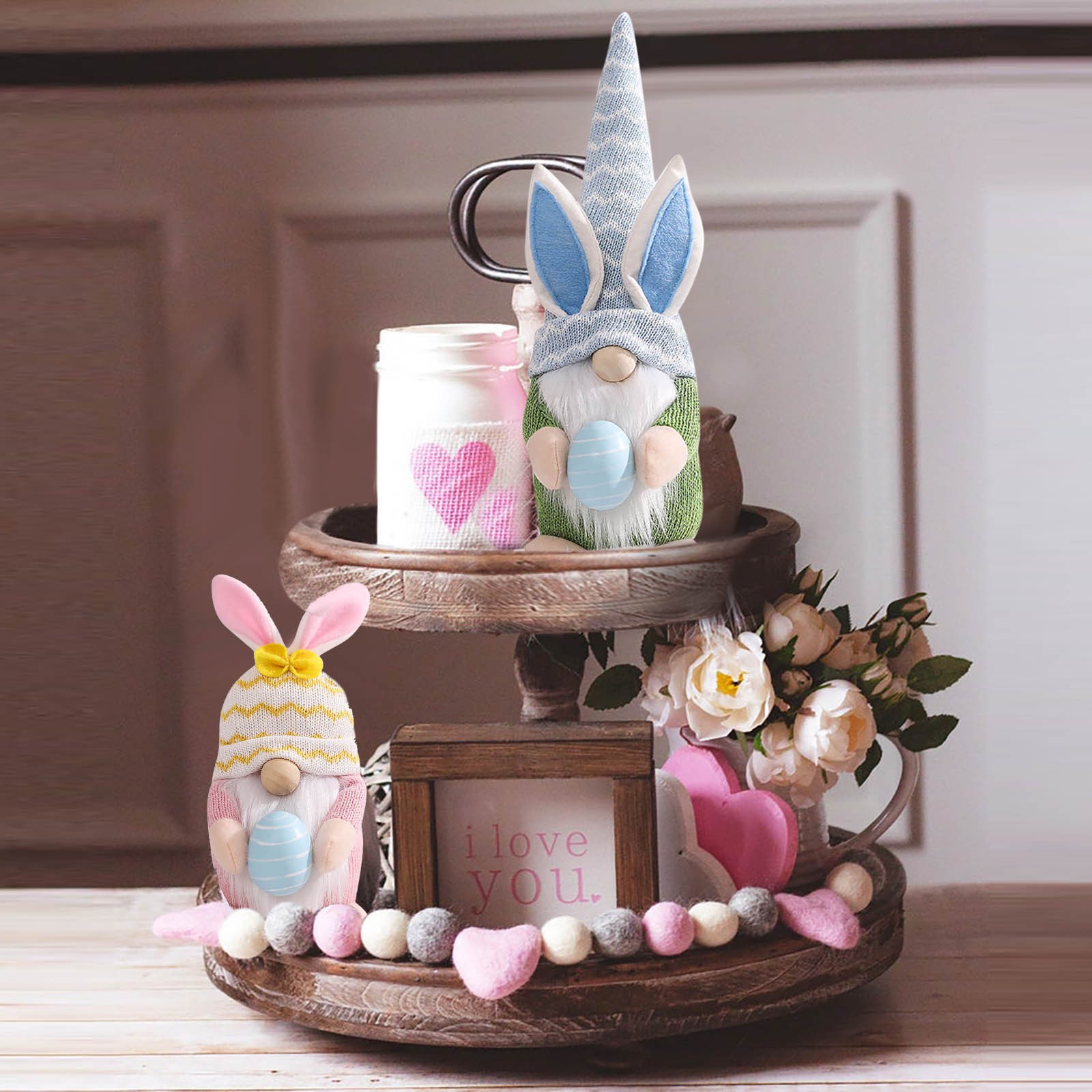 Каждая безликая кукла имеет белую бороду и розовые уши. Стабильное и легкое основание может использоваться в различных положениях использования, таких как столы, диваны, книжные шкафы, полки, мантелы и топы для бутылок. Добавьте глазурь в домашний декор весной.