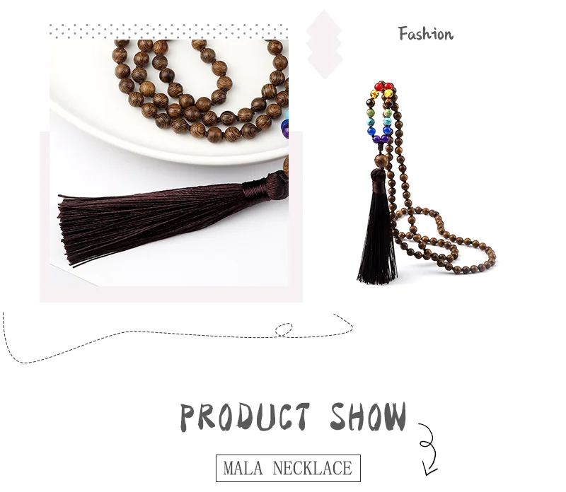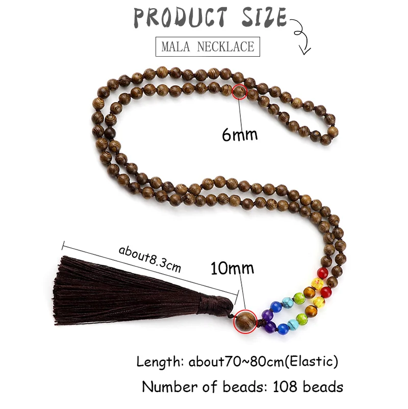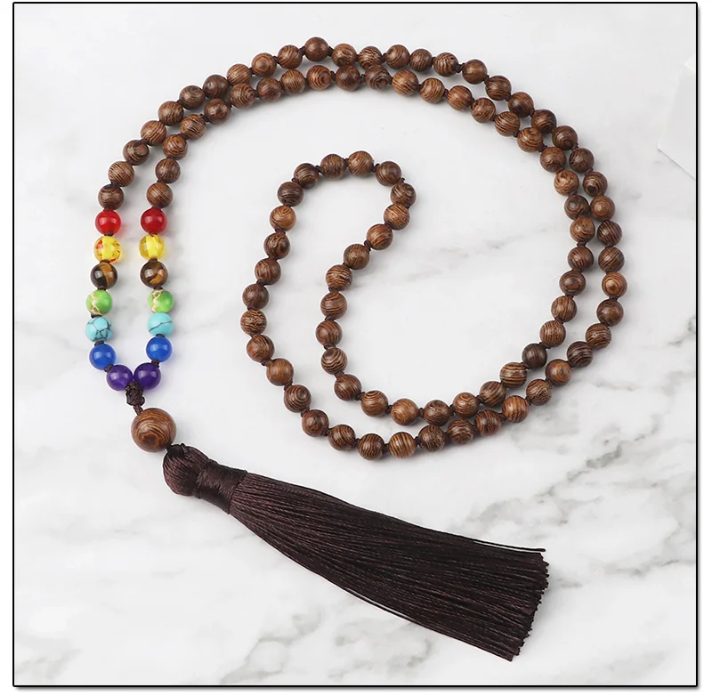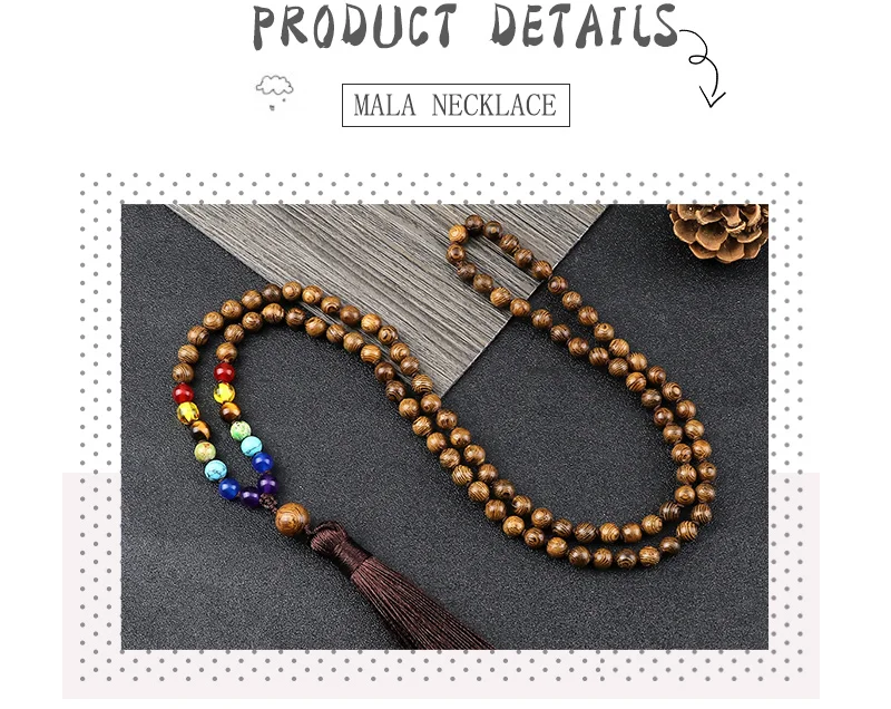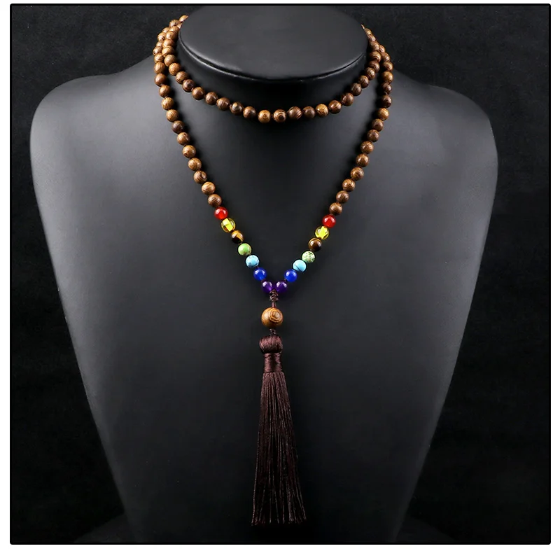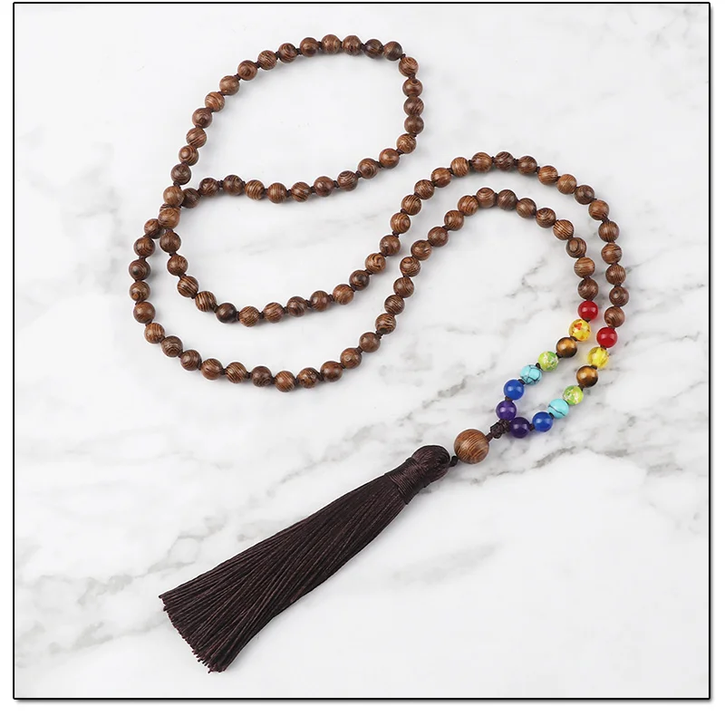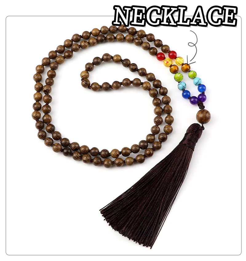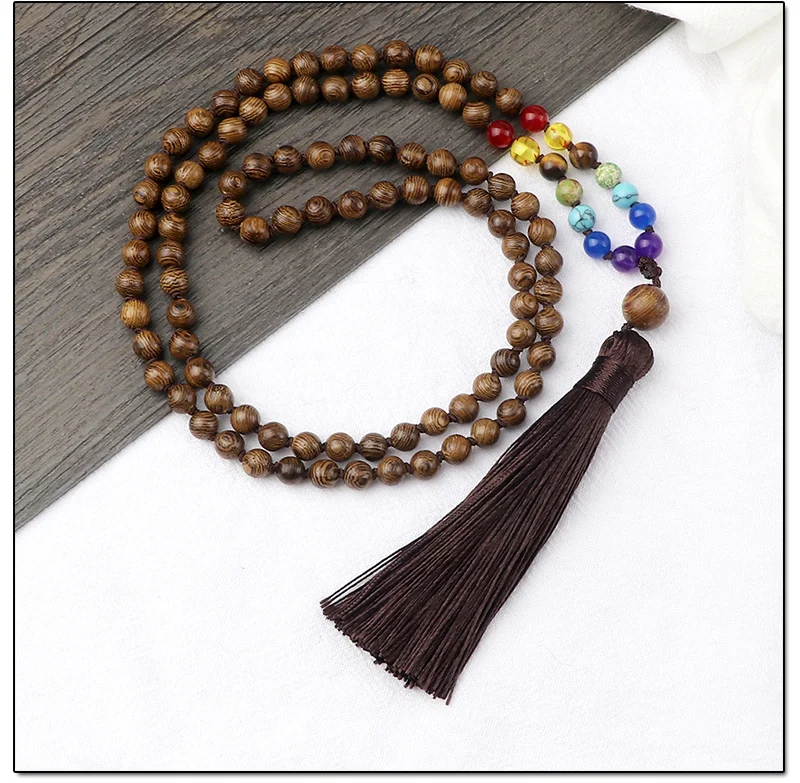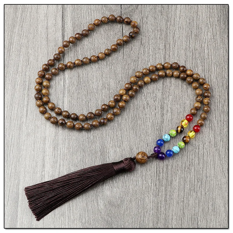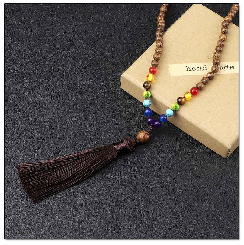 7 Чакр рейки длинное ожерелье для мужчин женщин ручной работы завязанные деревянные бусины 108 мала-Розарий Ожерелье с кисточкой Будда для молитвы ювелирные изделия