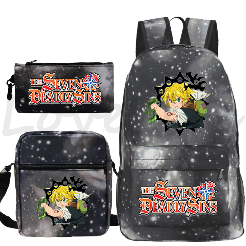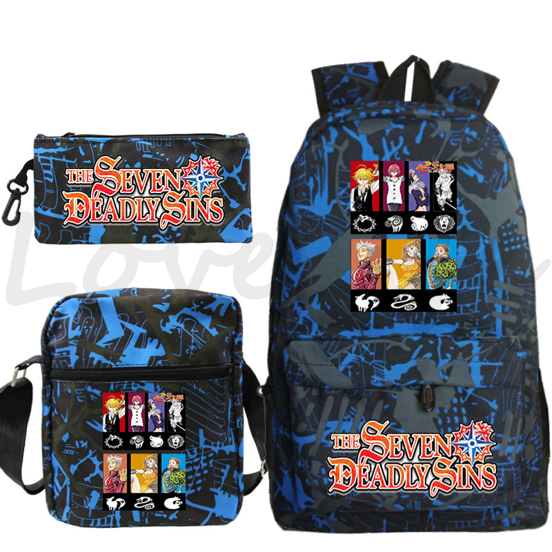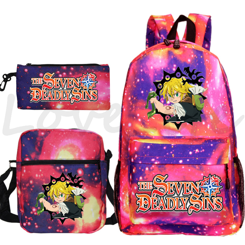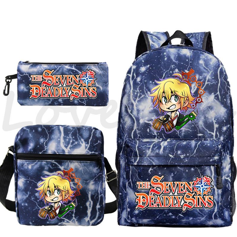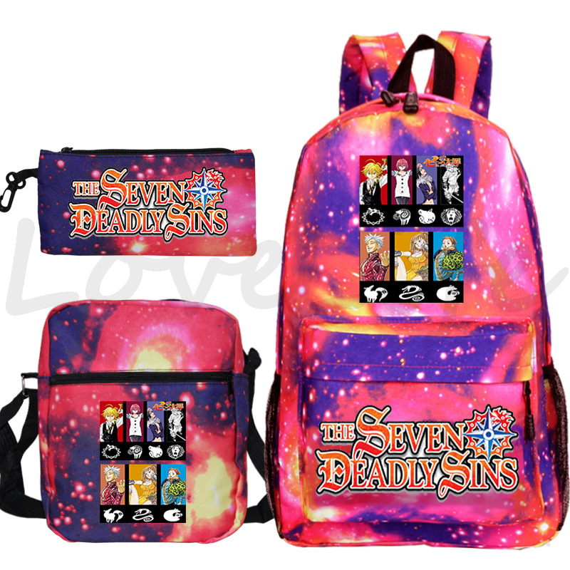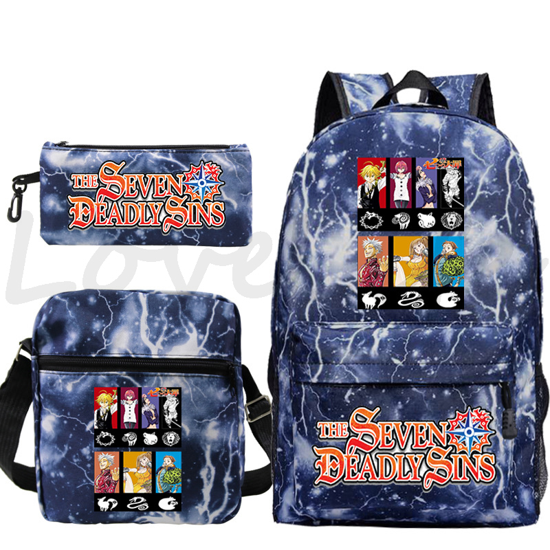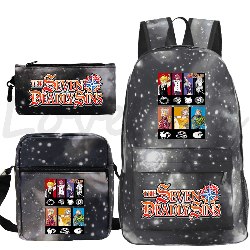Рюкзак с принтом аниме The Seven Deadly Sins 3 шт./компл., школьные рюкзаки с принтом манги для мальчиков и девочек, рюкзак для ноутбука для студентов и подростков