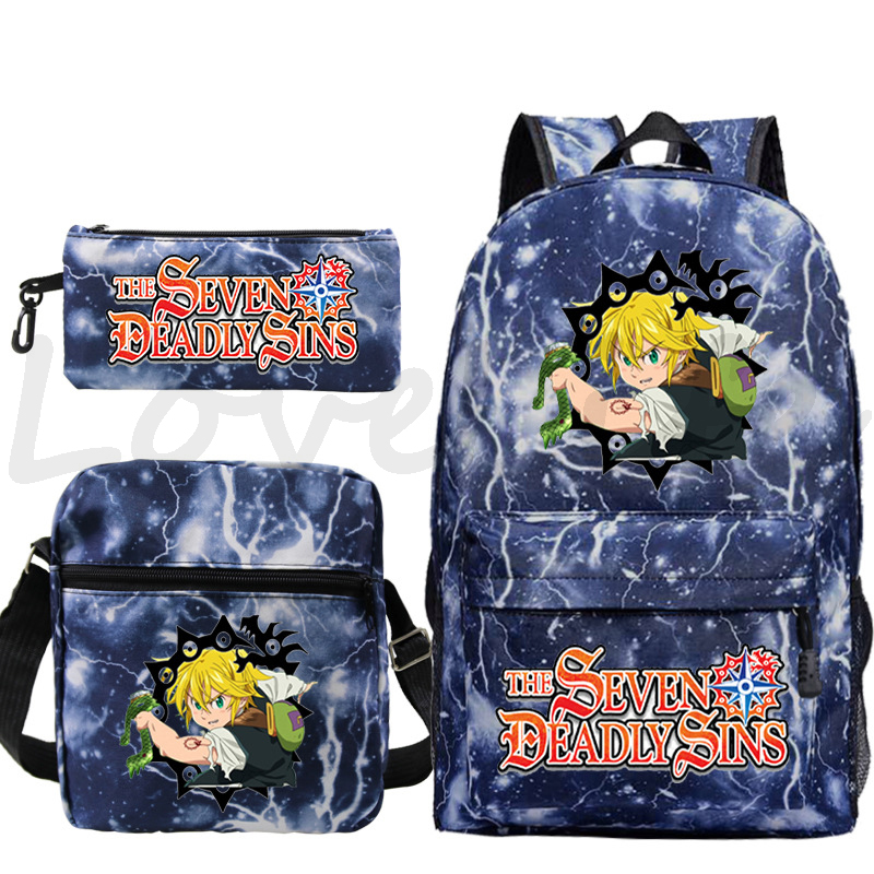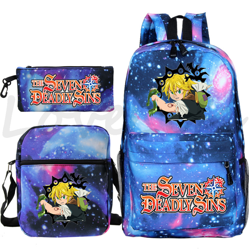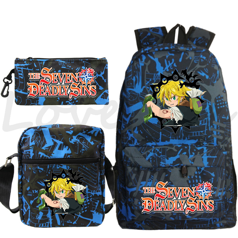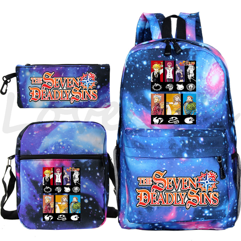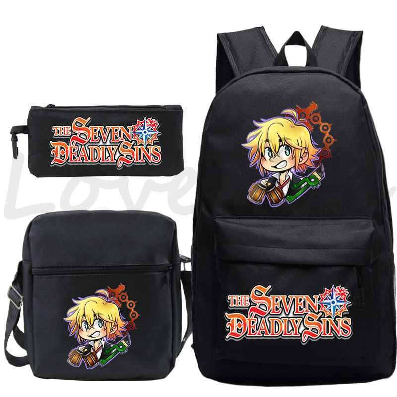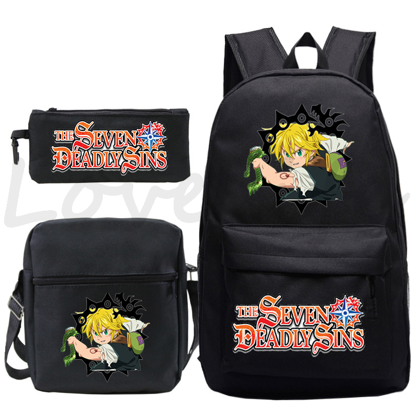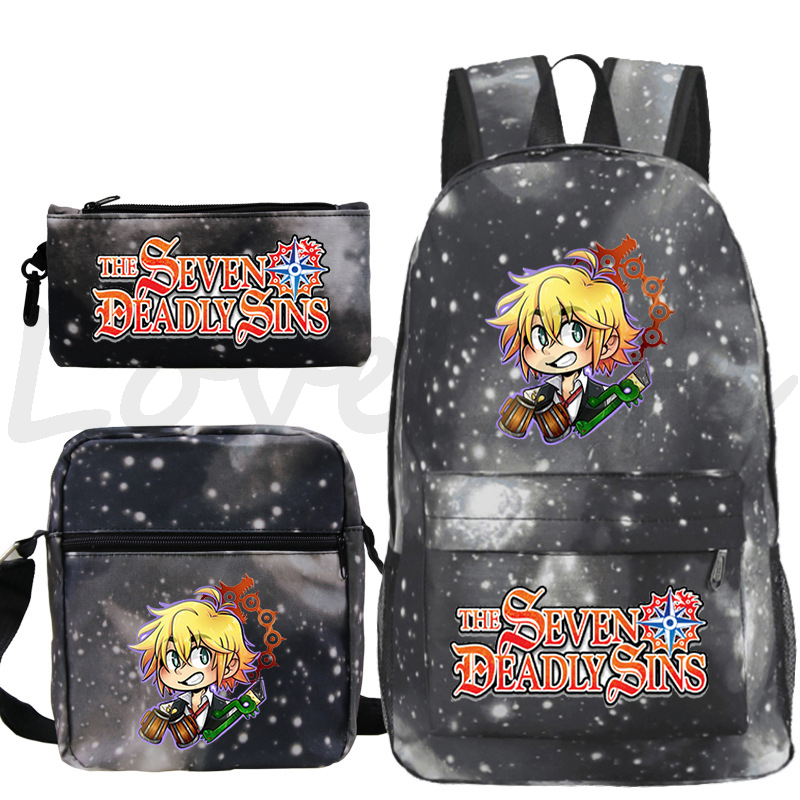 Рюкзак с принтом аниме The Seven Deadly Sins 3 шт./компл., школьные рюкзаки с принтом манги для мальчиков и девочек, рюкзак для ноутбука для студентов и подростков