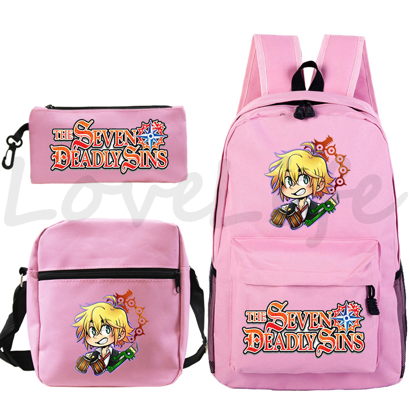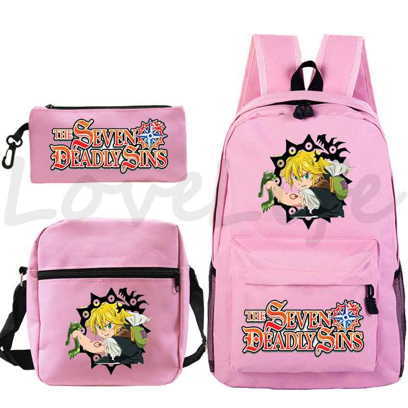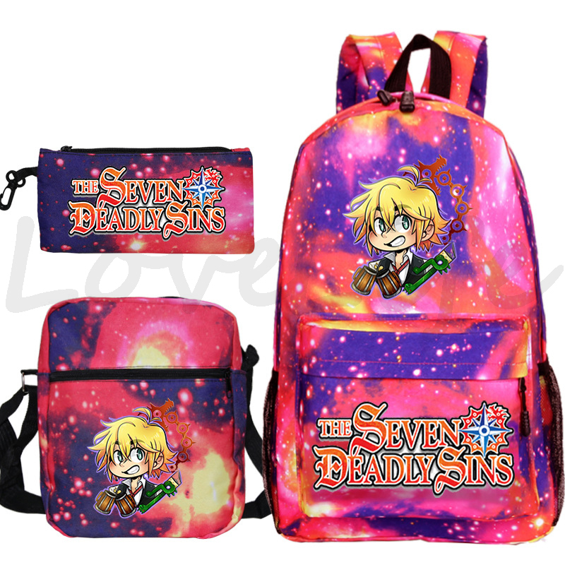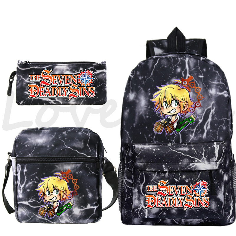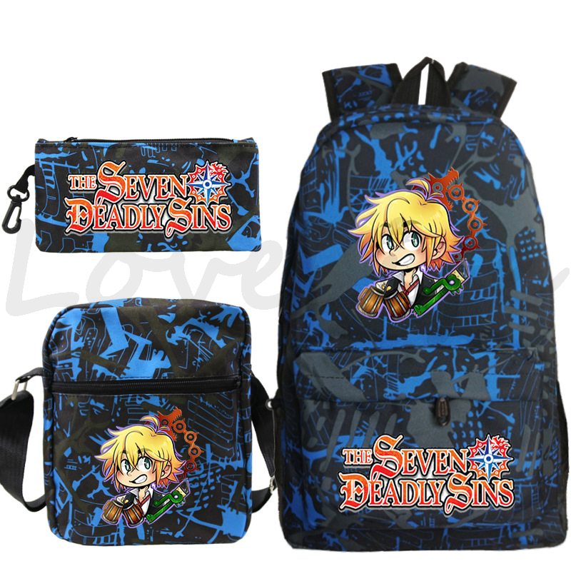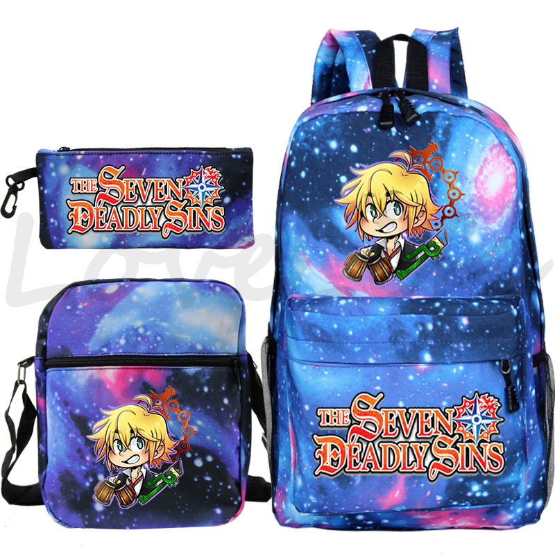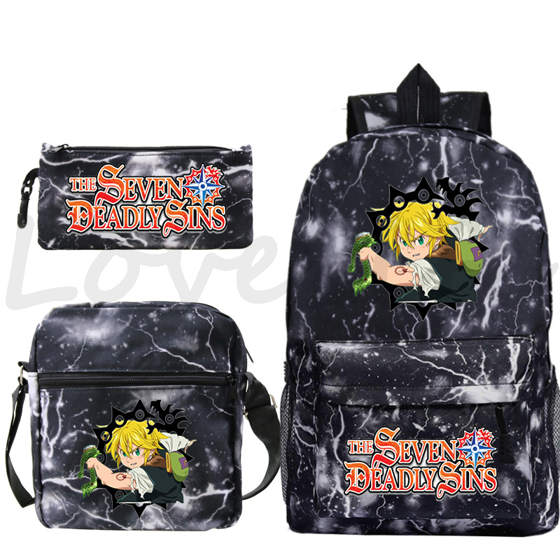 Рюкзак с принтом аниме The Seven Deadly Sins 3 шт./компл., школьные рюкзаки с принтом манги для мальчиков и девочек, рюкзак для ноутбука для студентов и подростков