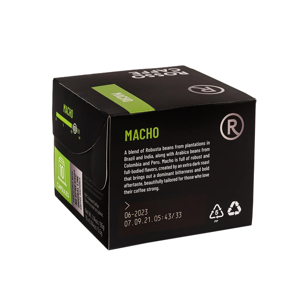 Богатый и насыщенный Macho экстра-темной обжарки (крепость 12) - самый крепкий кофе в линейке! Плотный Gentleman экстра-темной обжарки (крепость 10) - кофе с округлым телом, вкус которого не оставит равнодушным! Крепкий кофе с фруктовыми нотками Maestro темной обжарки (крепость 9) - для любителей фруктово-ореховых послевкусий!Характеристики