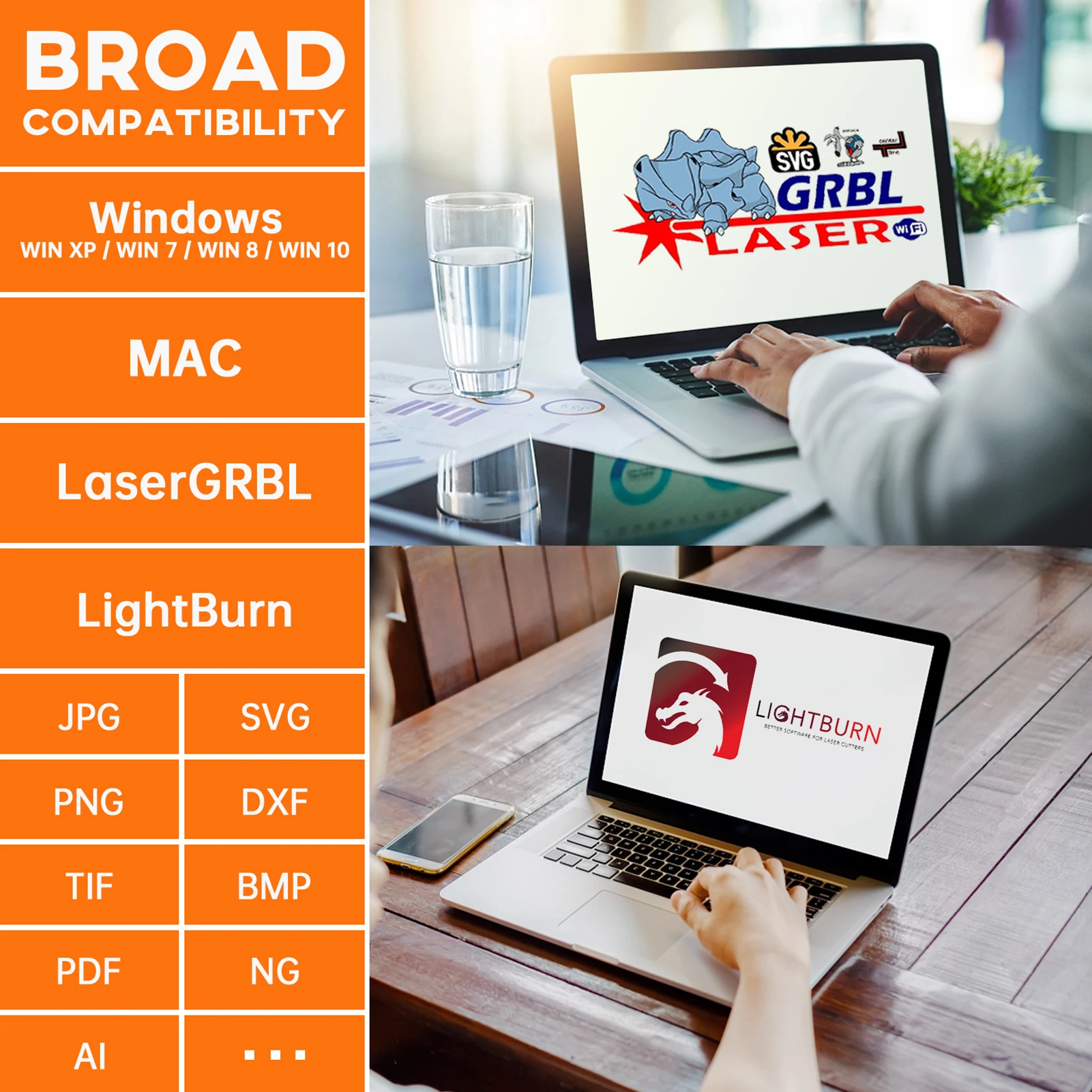 Широкая совместимость:Машина совместима с различными зрелыми программным обеспечением гравировки, такими как LaserGRBL, LightBurn, Benbox, GrblController, LiteFire, поддержка s PWM режим гравировки, поддержка s система Windows, система (LightBurn), И формат гравировки файлов поддерживает JPG, PNG, DXF, SVG, g-код, NC, BMP и т. Д.