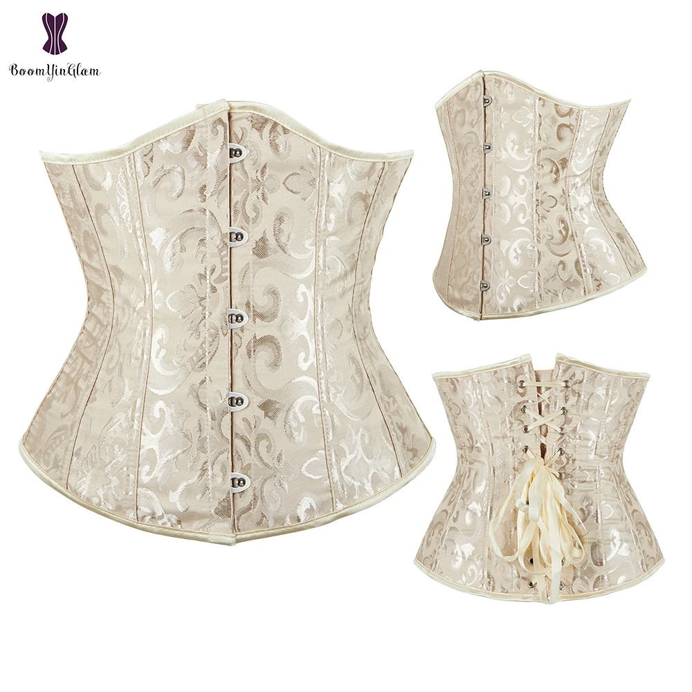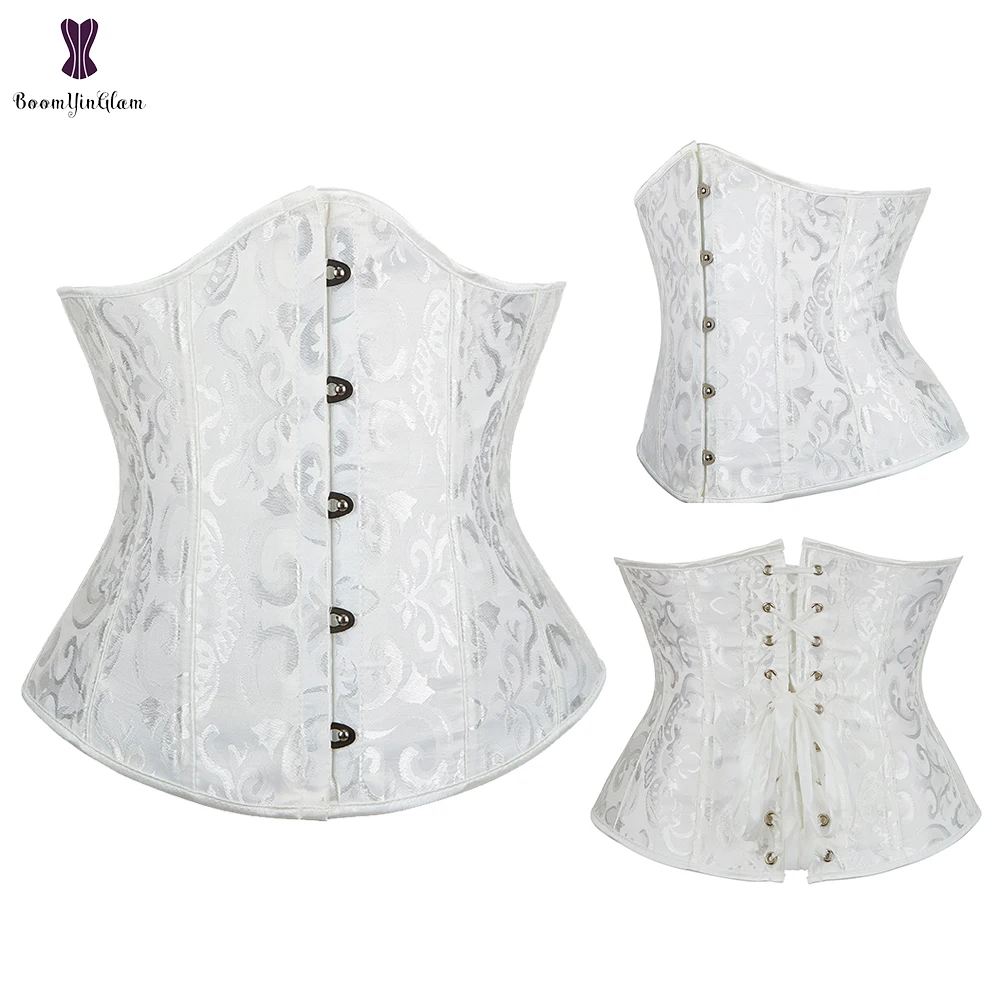 Женский корсет под грудь, жаккард, белый, черный, на шнуровке, корсет для талии, бюстье, бюстье, корсеты, XS-6XL