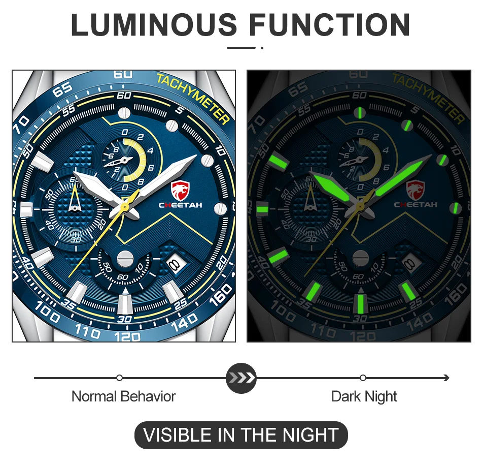 CHEETAH Лидирующий бренд, Роскошные Кварцевые часы с хронографом, мужские водонепроницаемые часы с датой, мужские спортивные часы, мужские повседневные деловые наручные часы