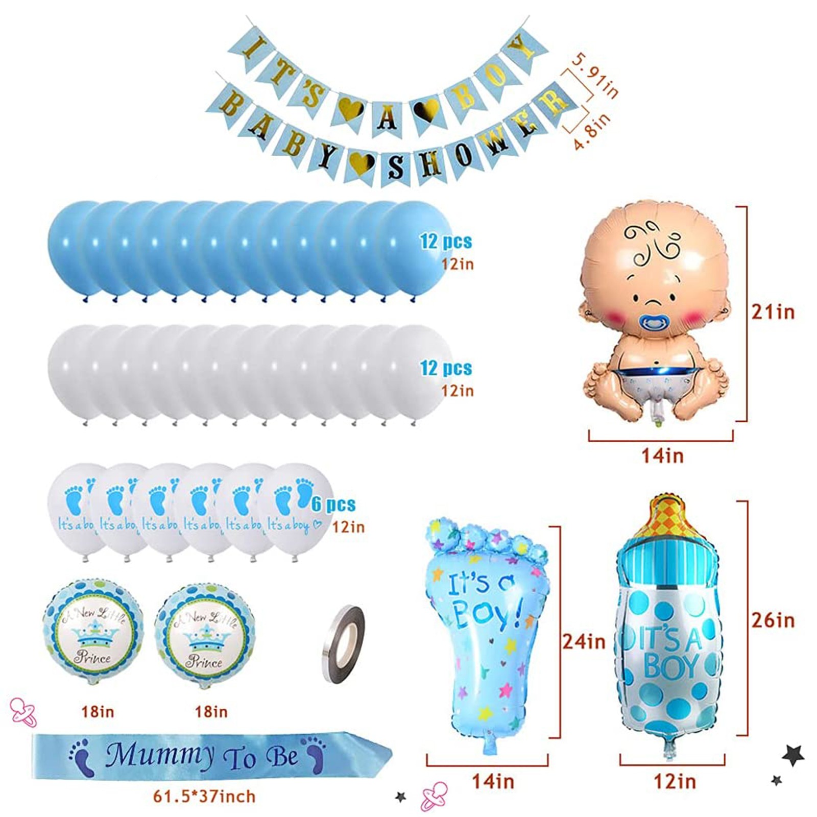 Малыш душ Мальчики Набор: наш ребенок душ мальчик украшения идеально подходят для ребенка Душ пол раскрывает крестильное украшение, включая будущая мама Sash x 1, это баннер для мальчиков, детский душ баннер (21 буквы), 12-дюймовый латексный шар x 30 (12 шт. небесно-голубой шар, 12 шт. белый шар, 6 шт. это мальчик печатать воздушный шар), 18 дюймов круглый детский душ воздушный шар из фольги. * 2, 211 1x26 дюймов Детские воздушные шары для младенцев, 1 х 24 дюйма шар в форме ножки и 1 х лента для воздушных шаров.