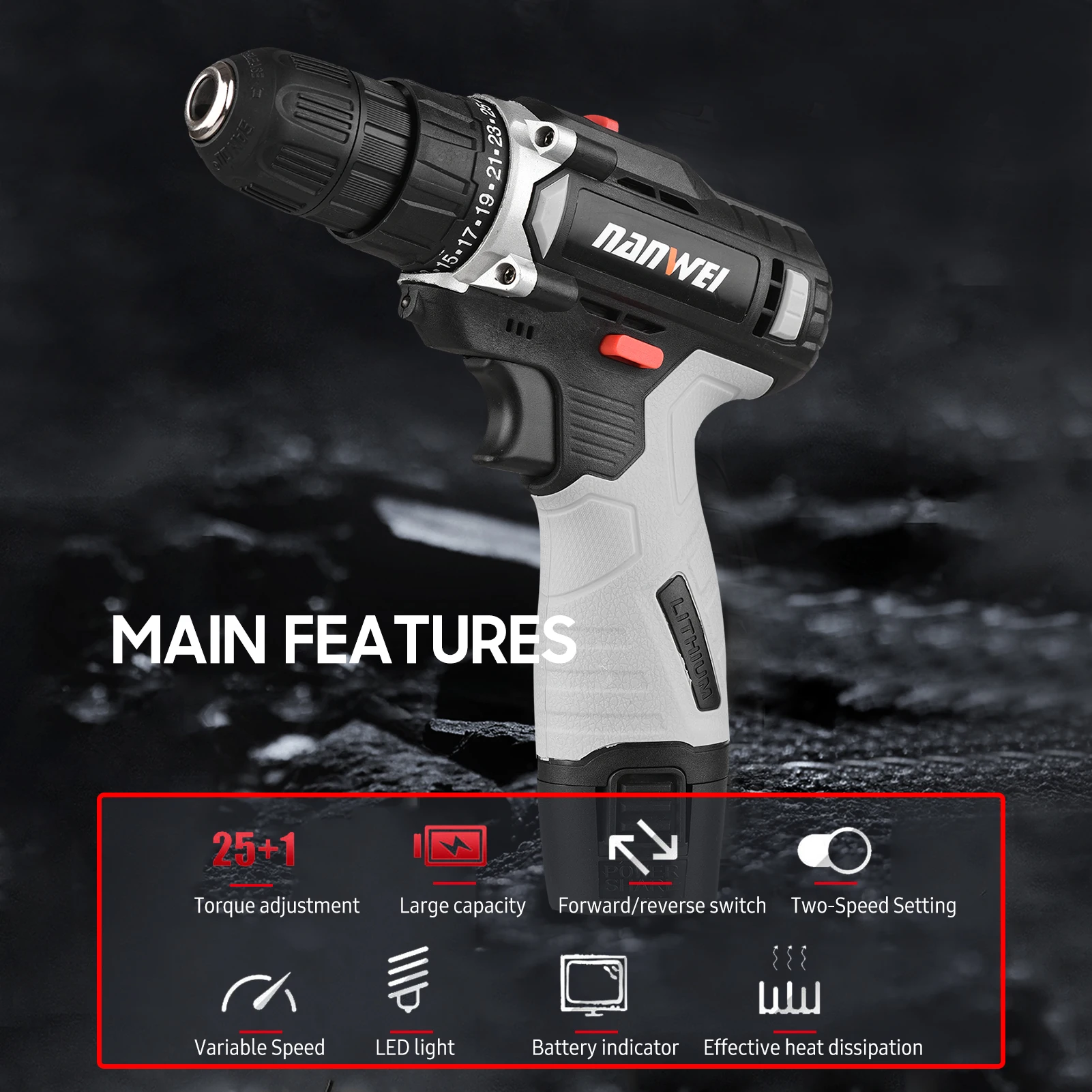 Ручная электрическая дрель с перезаряжаемой литиевой батареей 1500 мАч и быстрым зарядным устройством-это практичный инструмент для сверления. Он прост в использовании и портативен для переноски, и может быть применим для ремонта дома, рукоделия DIY, деревообработки, садовой работы, ремонта автомобиля и многого другого!