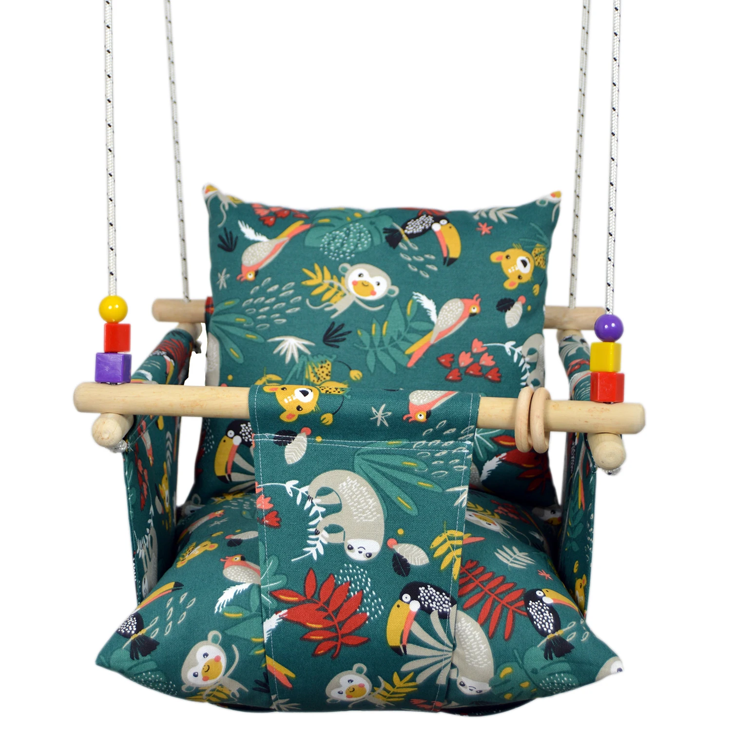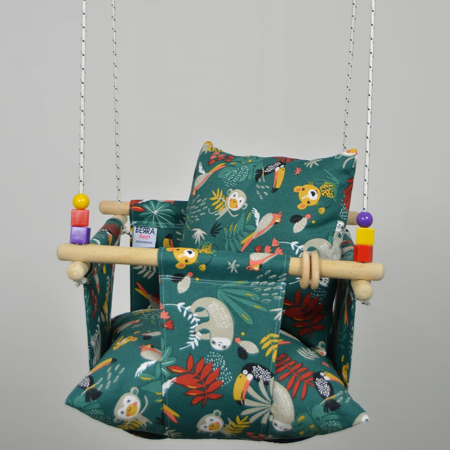 Berra Life Ceiling Hanging Baby Hammock Home-Garden Type Child Baby Swing Hammock Cheerful Animals Green