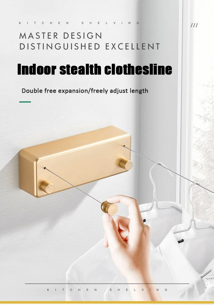 【 Clothesline】-Двойная Выдвижная линия для большего объема хранения. Полностью сохраните ваше пространство дома! Линия одежды является водонепроницаемой и водонепроницаемой, что делает ее более прочной, чем продукты других. Прекрасная идея для подарка на квартиры, подарки на день рождения, Рождество, праздники, День матери, День отца или любые другие подарки.